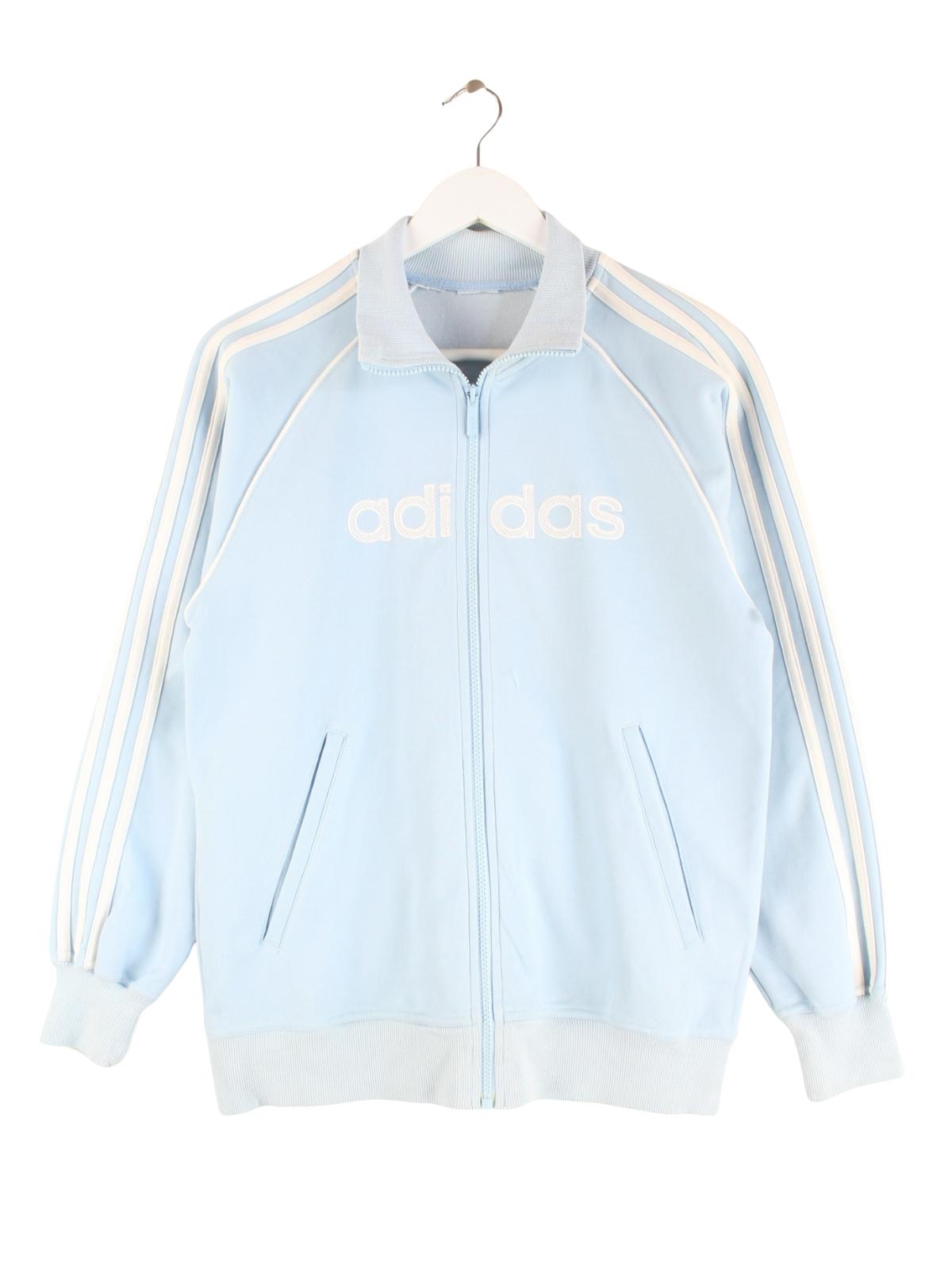 Blaue Trainingsjacke vom Brand Adidas in Größe S. Sie ist aus Synthetik und in gutem Zustand in Stock.