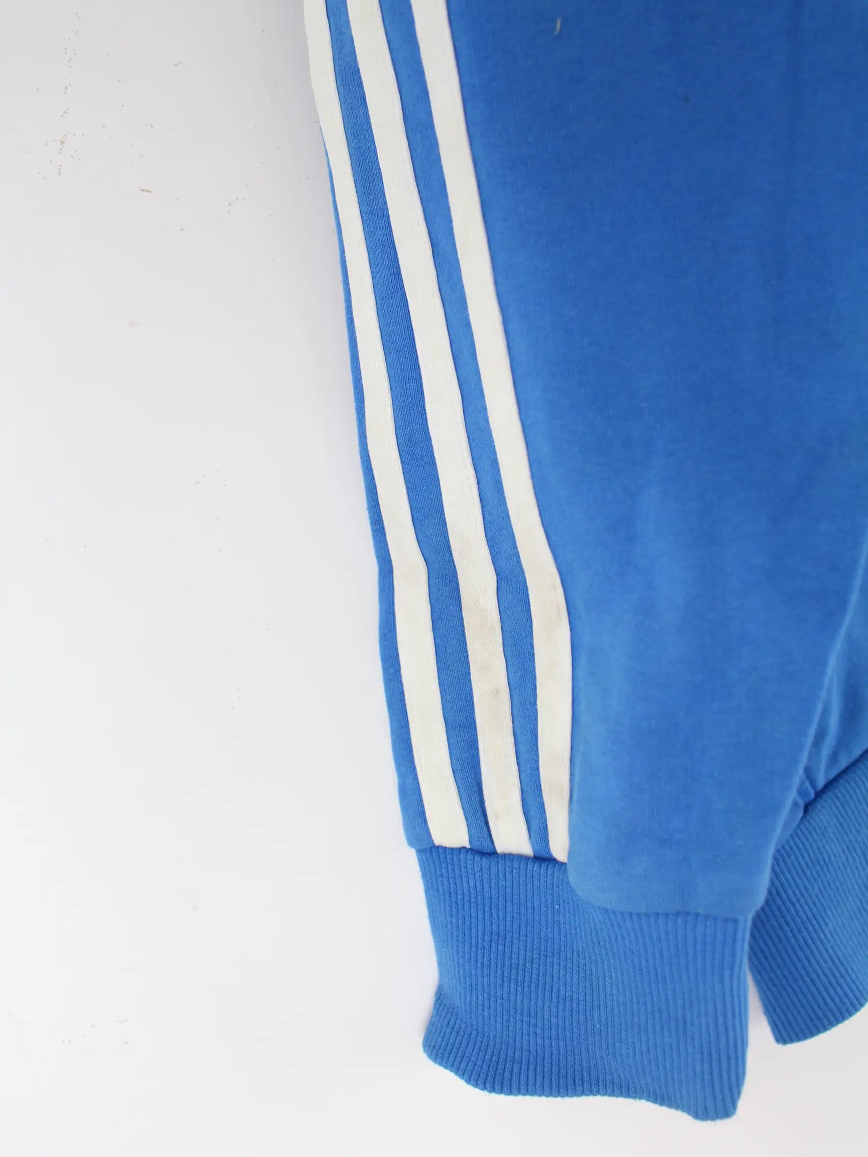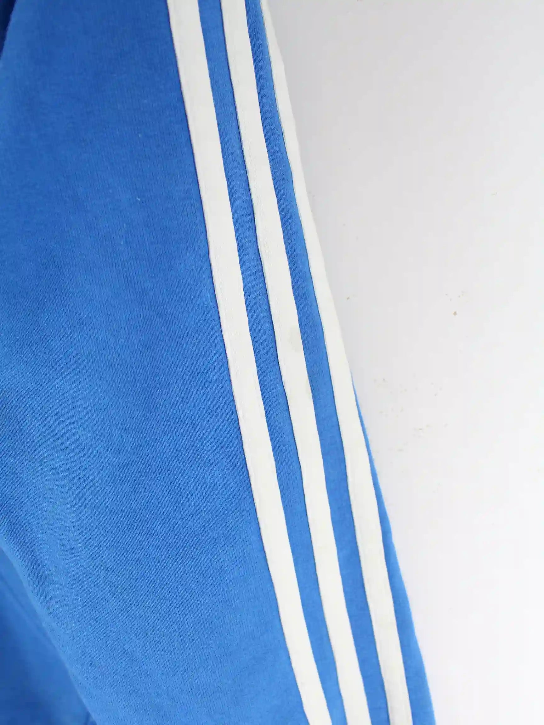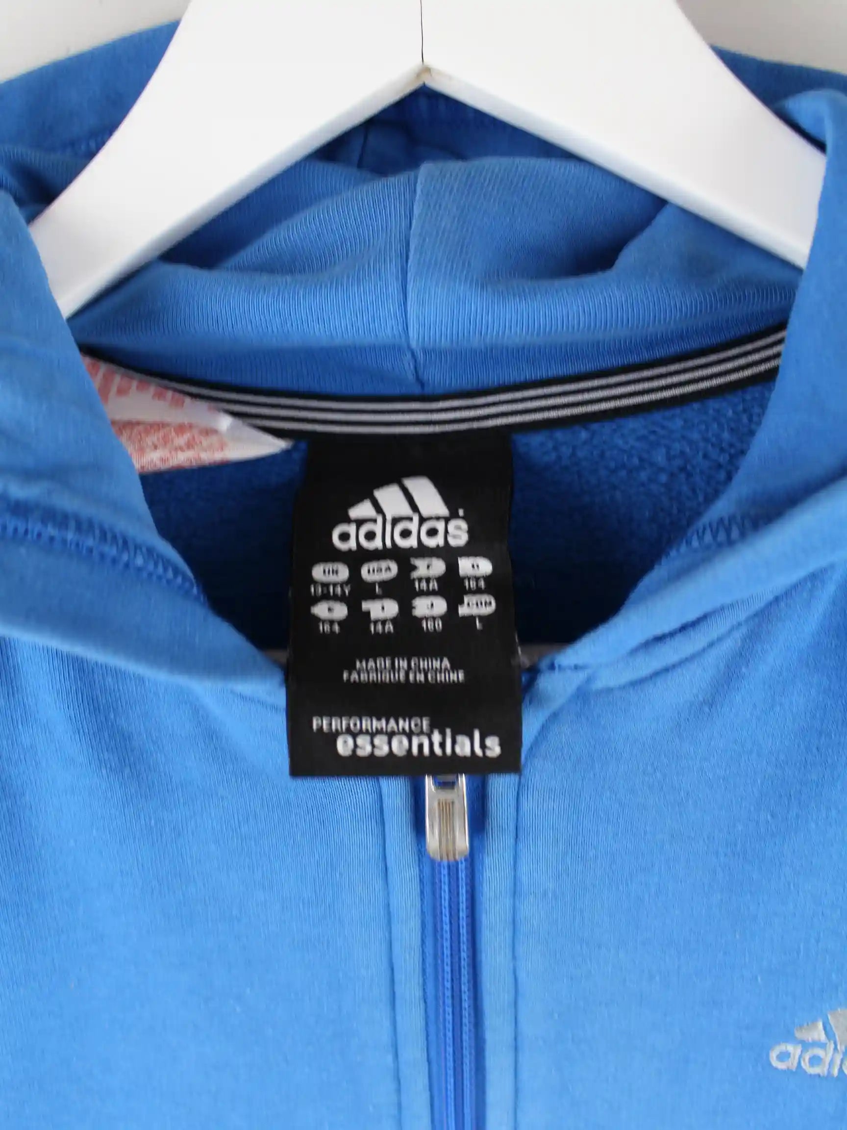 Hoodie des Labels Adidas mit Zip in Größe S. Er ist aus einer Baumwollmischung angefertigt und in Blau zu haben.