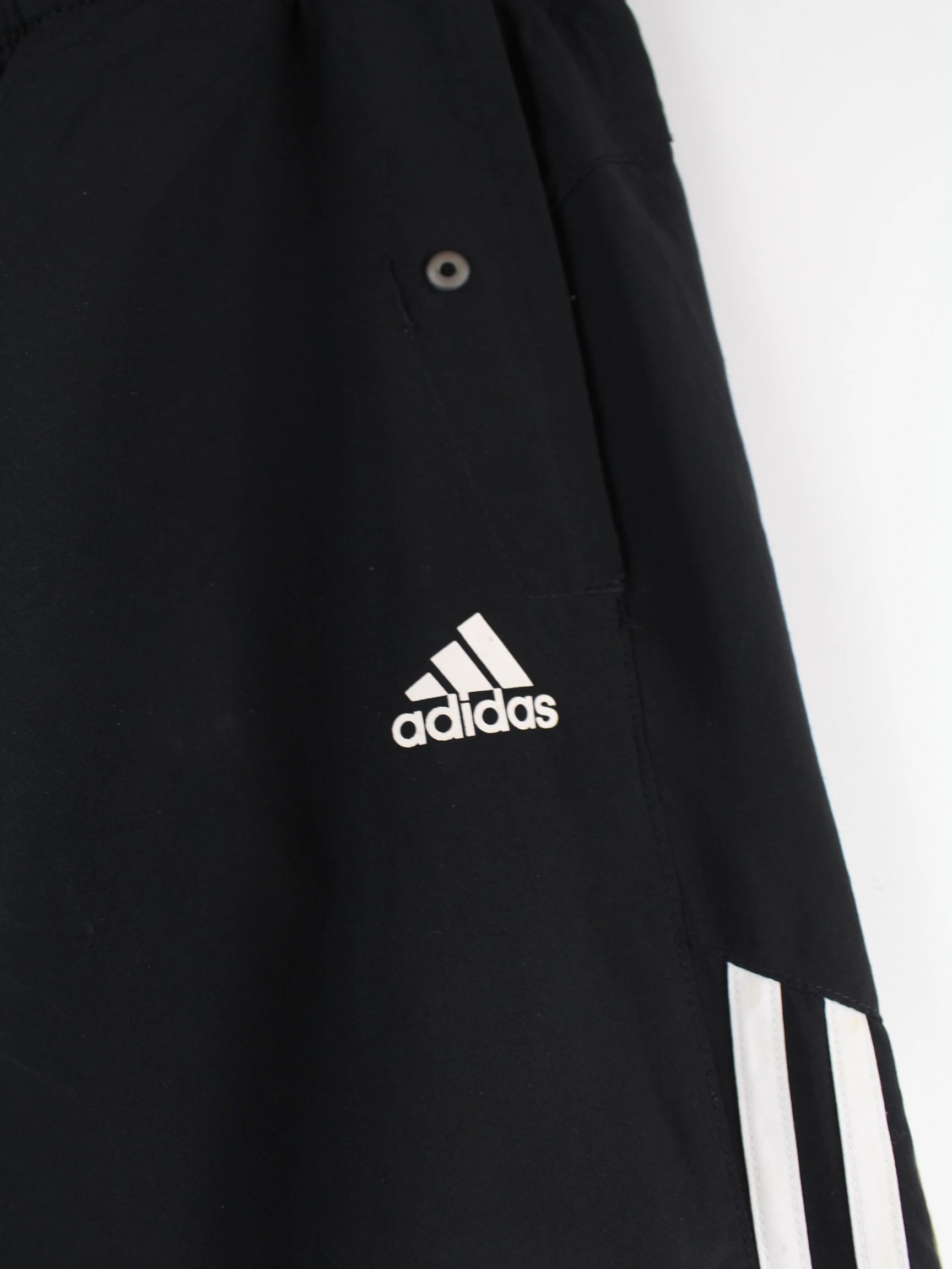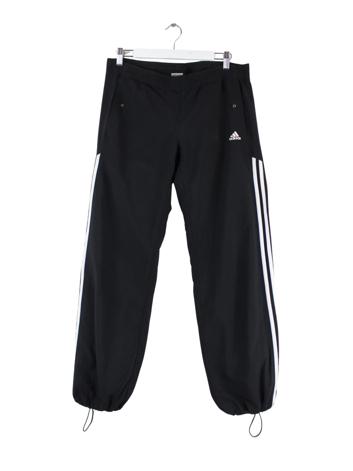 Schwarze Track Pants vom Brand Adidas in Größe M. Sie sind aus Synthetik produziert und in gutem Zustand bei uns zu bekommen.