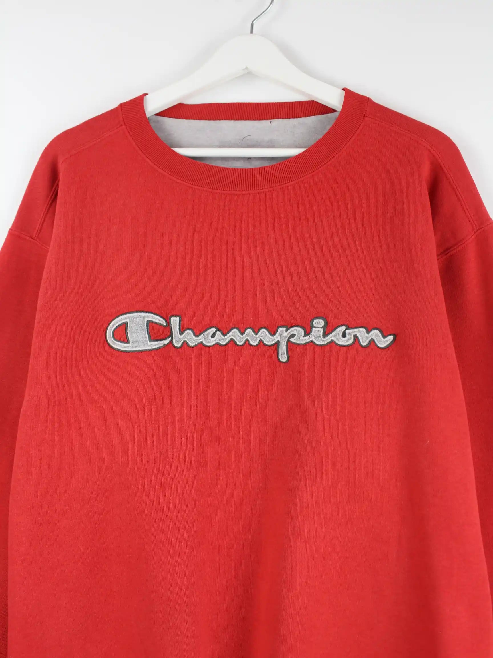 Roter Sweater vom Brand Champion in Größe L. Er ist aus einer Baumwollmischung hergestellt und in gutem Zustand im Angebot.