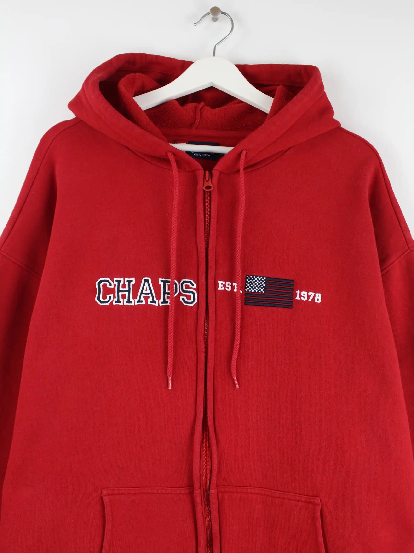 Hoodie von Chaps by Ralph Lauren mit Zip in Größe XXL. Er ist aus einer Baumwollmischung angefertigt und in Rot zu bekommen.