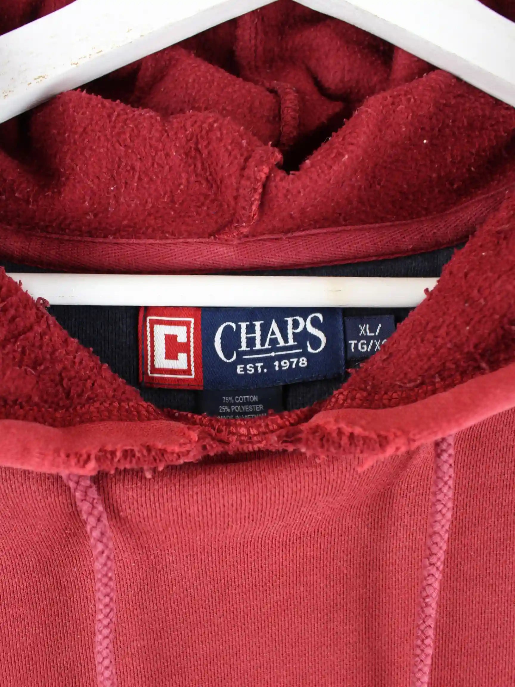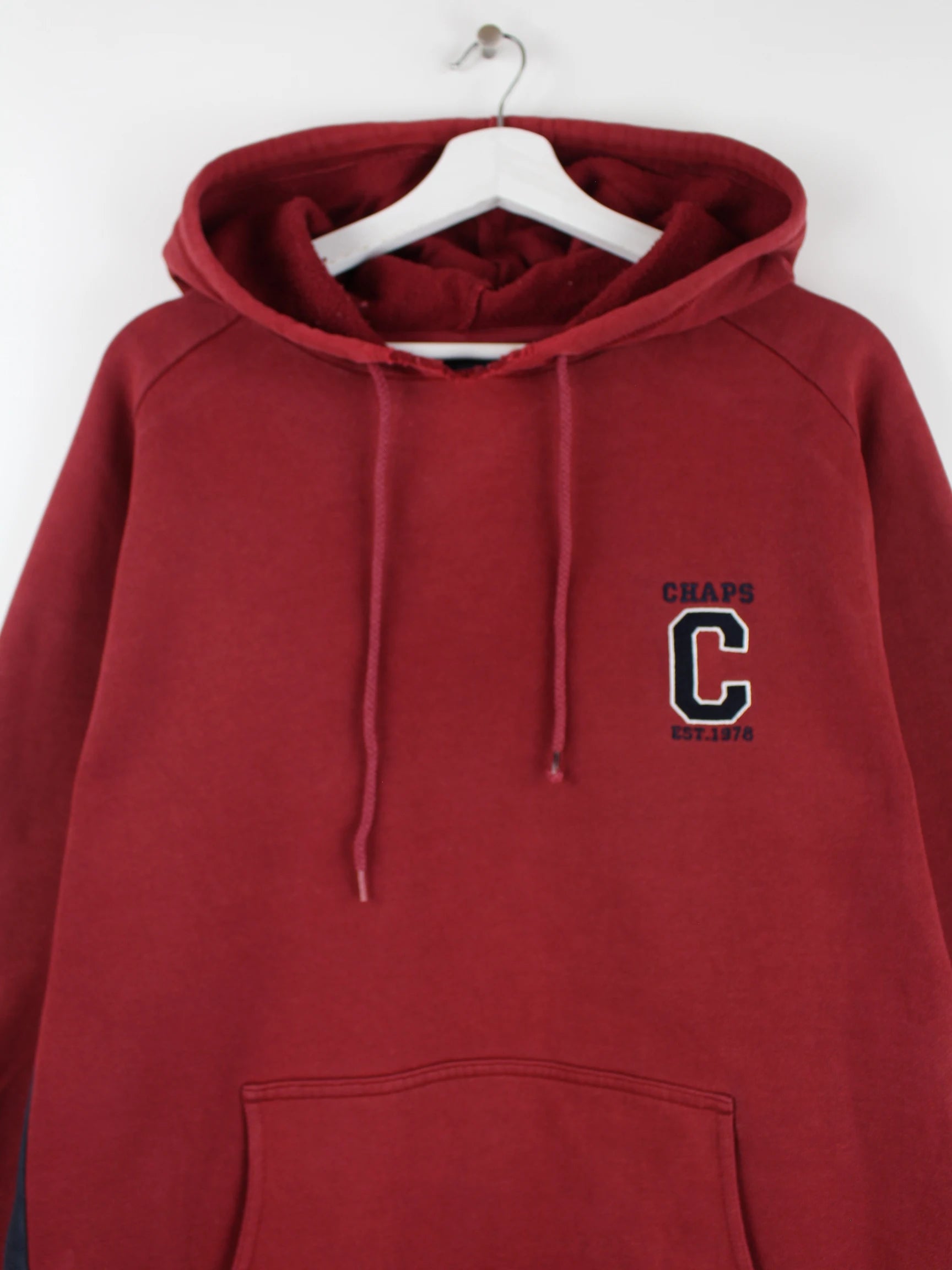 Roter Hoodie des Labels Chaps by Ralph Lauren in Größe XL. Er ist aus einer Baumwollmischung angefertigt und in gutem Zustand im Bestand.