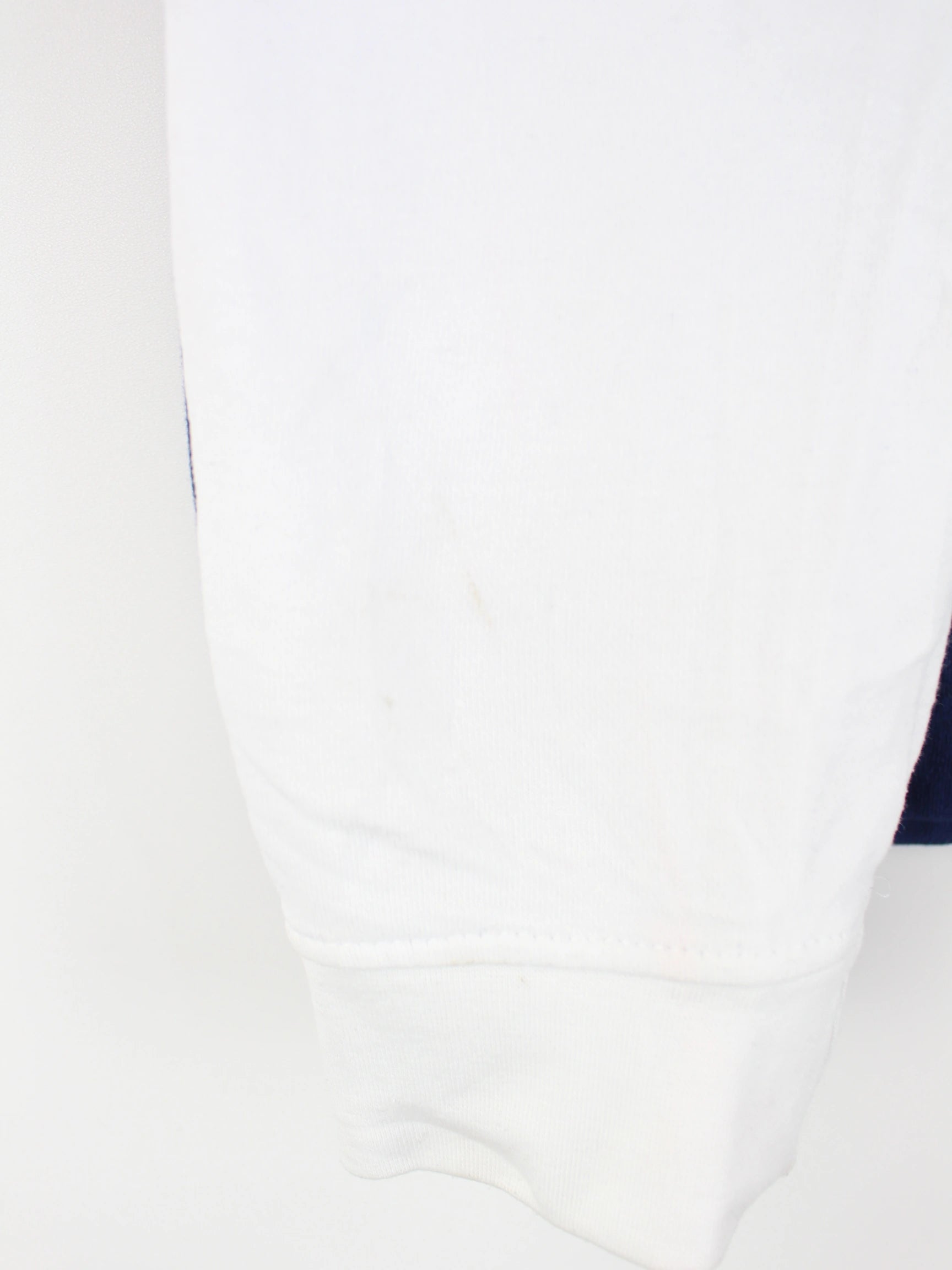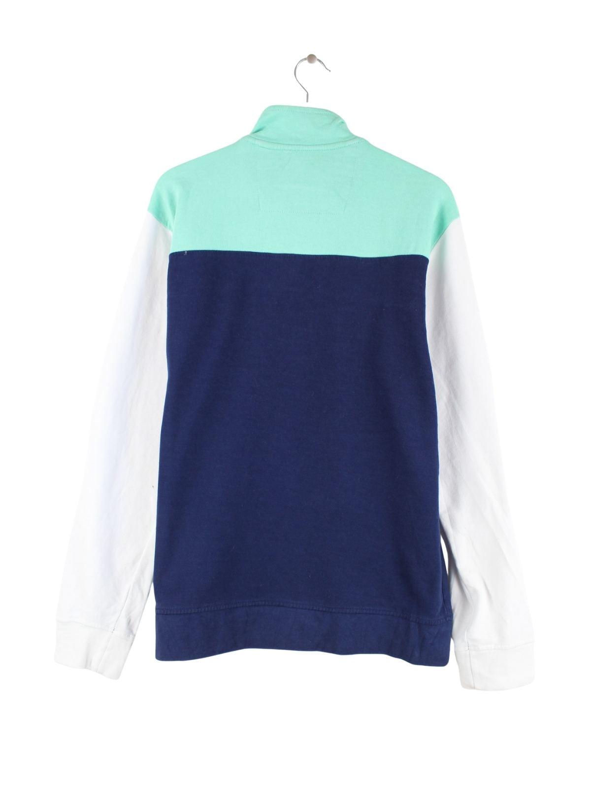 Sweater aus dem Hause Chaps by Ralph Lauren mit kurzem Reißverschluß in Größe L. Er ist aus einer Baumwollmischung gefertigt und in Blau zu bekommen.