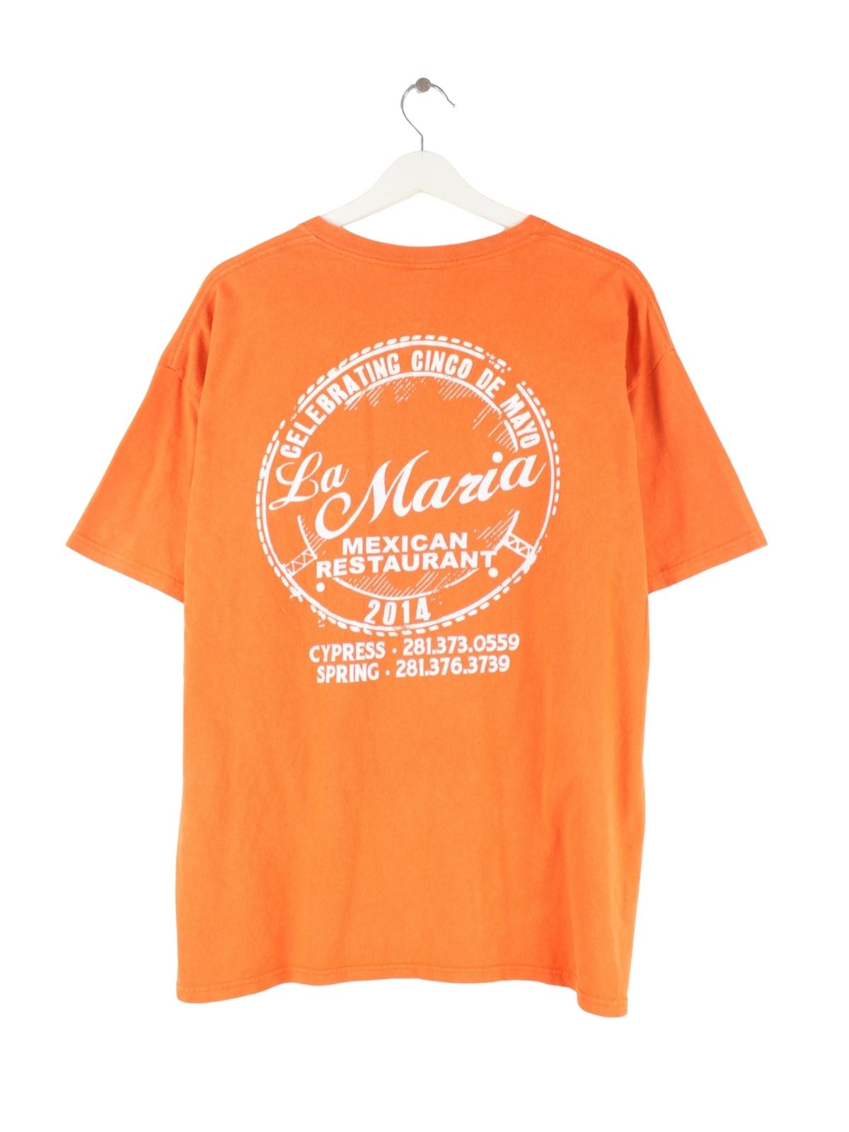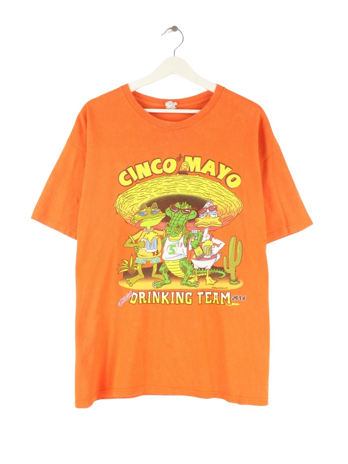 T-Shirt der Brand Delta in Größe XL. Es ist aus Baumwolle produziert und in Orange im Bestand. Mit schönem Team Print.