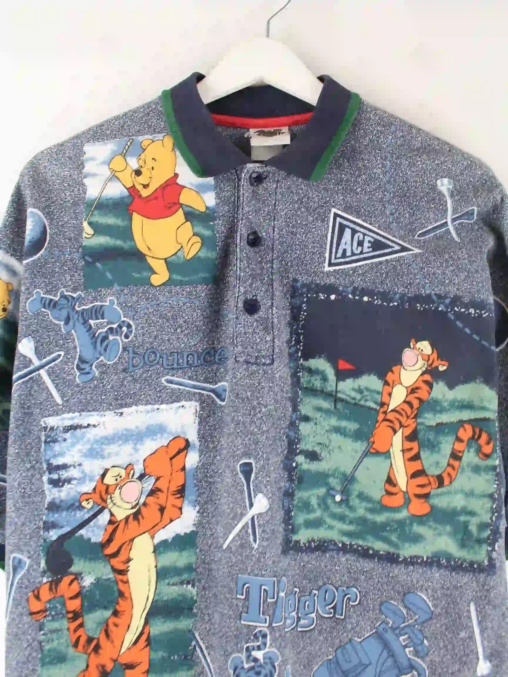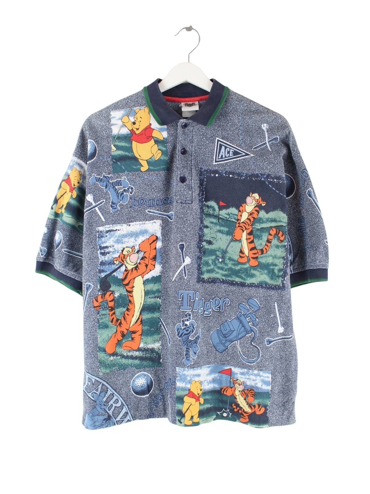 Blaues Poloshirt vom Label Disney in Größe M. Es ist aus Baumwolle hergestellt und in gutem Zustand in Stock. Mit tollem Tigger Print.