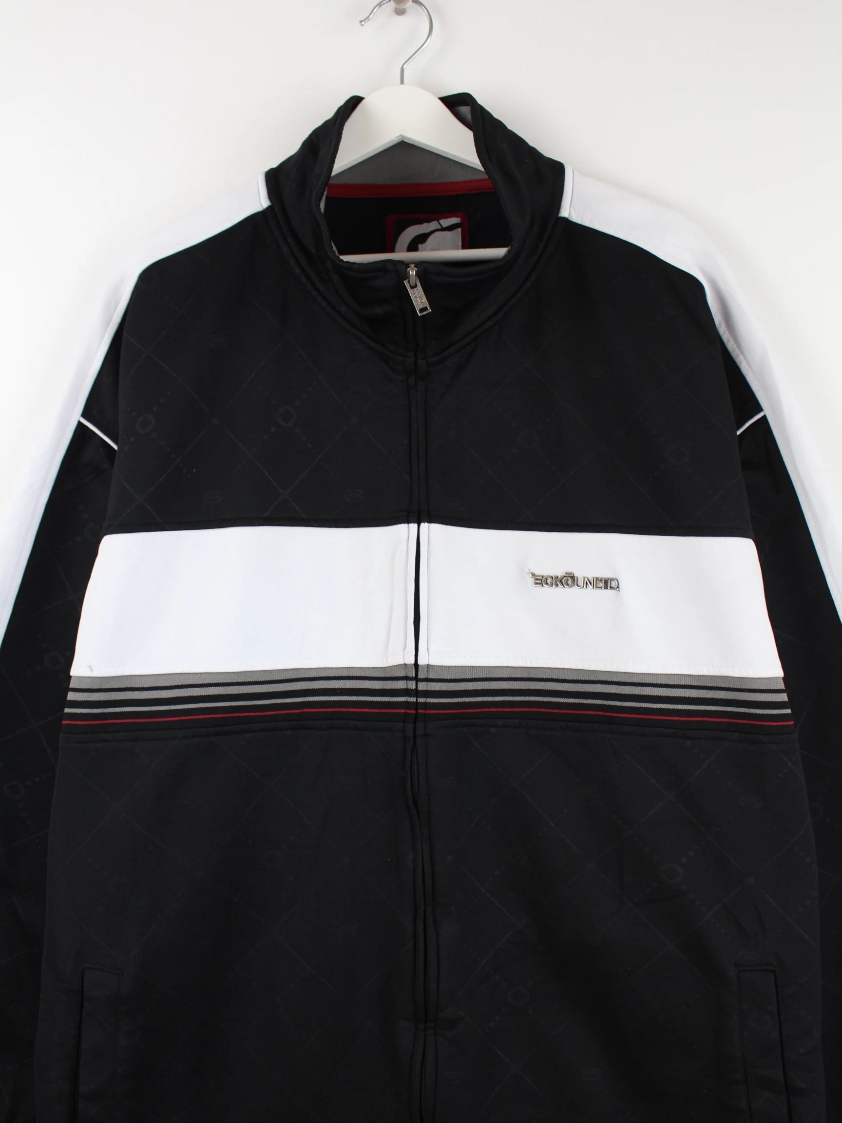 Schwarze Trainingsjacke vom Brand Ecko in Größe 3XL. Sie ist aus Synthetik gefertigt. Den Zustand würden wir als 'In Ordnung' bezeichnen (vergl. Bilder).