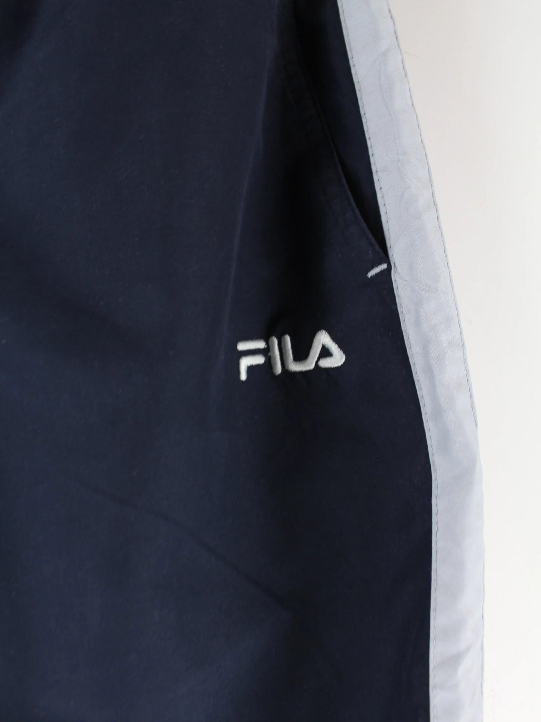 Blaue Track Pants der Marke Fila in Größe S. Sie sind aus einer Baumwollmischung gefertigt und in sehr gutem Zustand vorrätig.