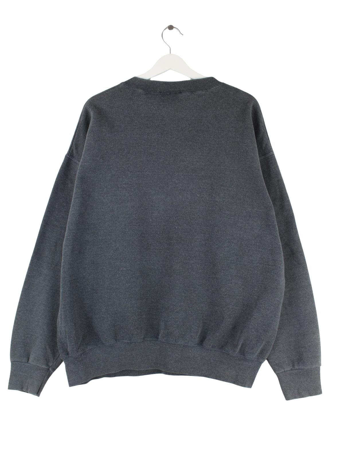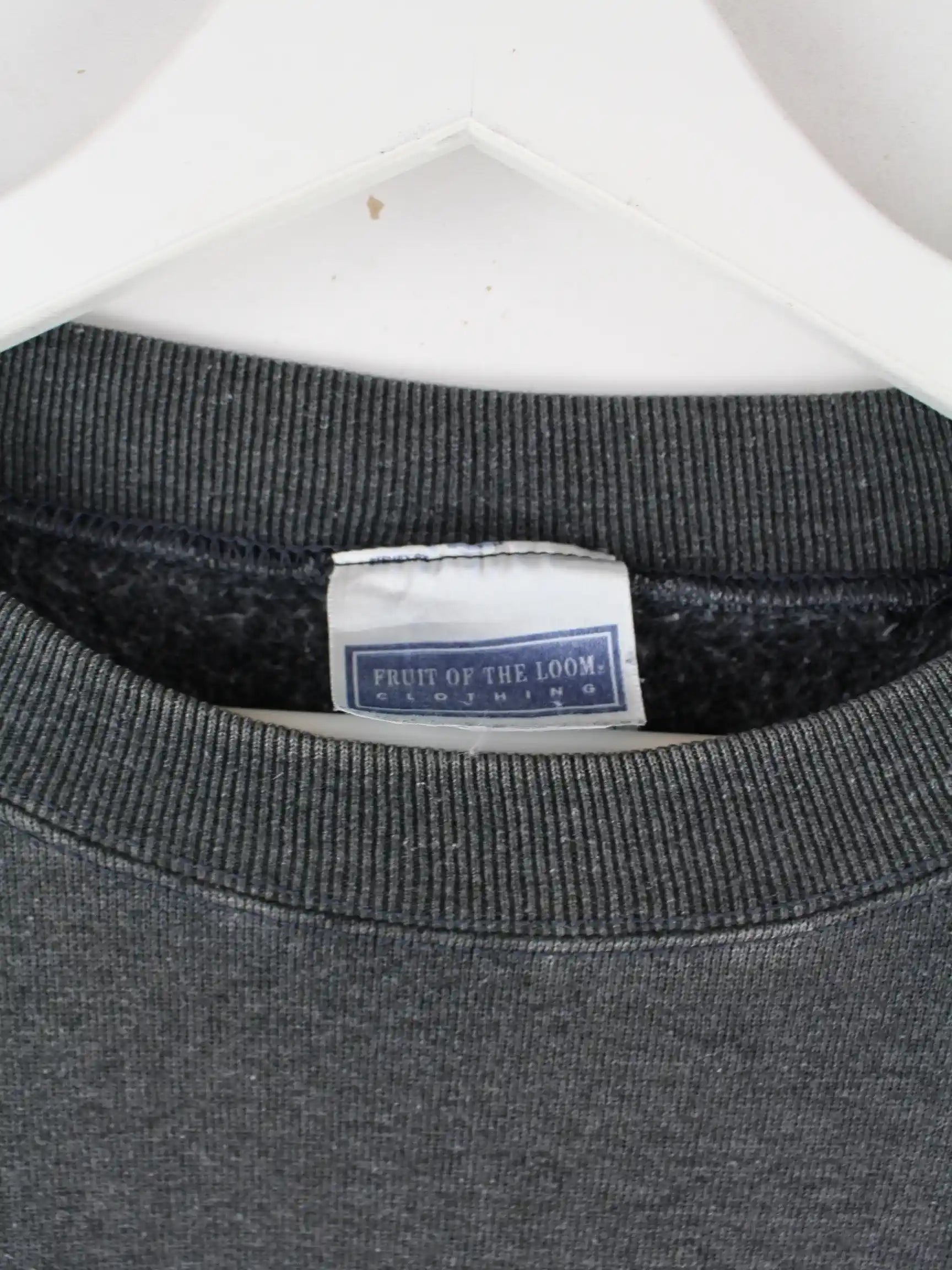 Sweater der Brand Fruit of the Loom mit gestickten Motiven in Größe L. Er ist aus einer Baumwollmischung produziert und in Grau zu haben.
