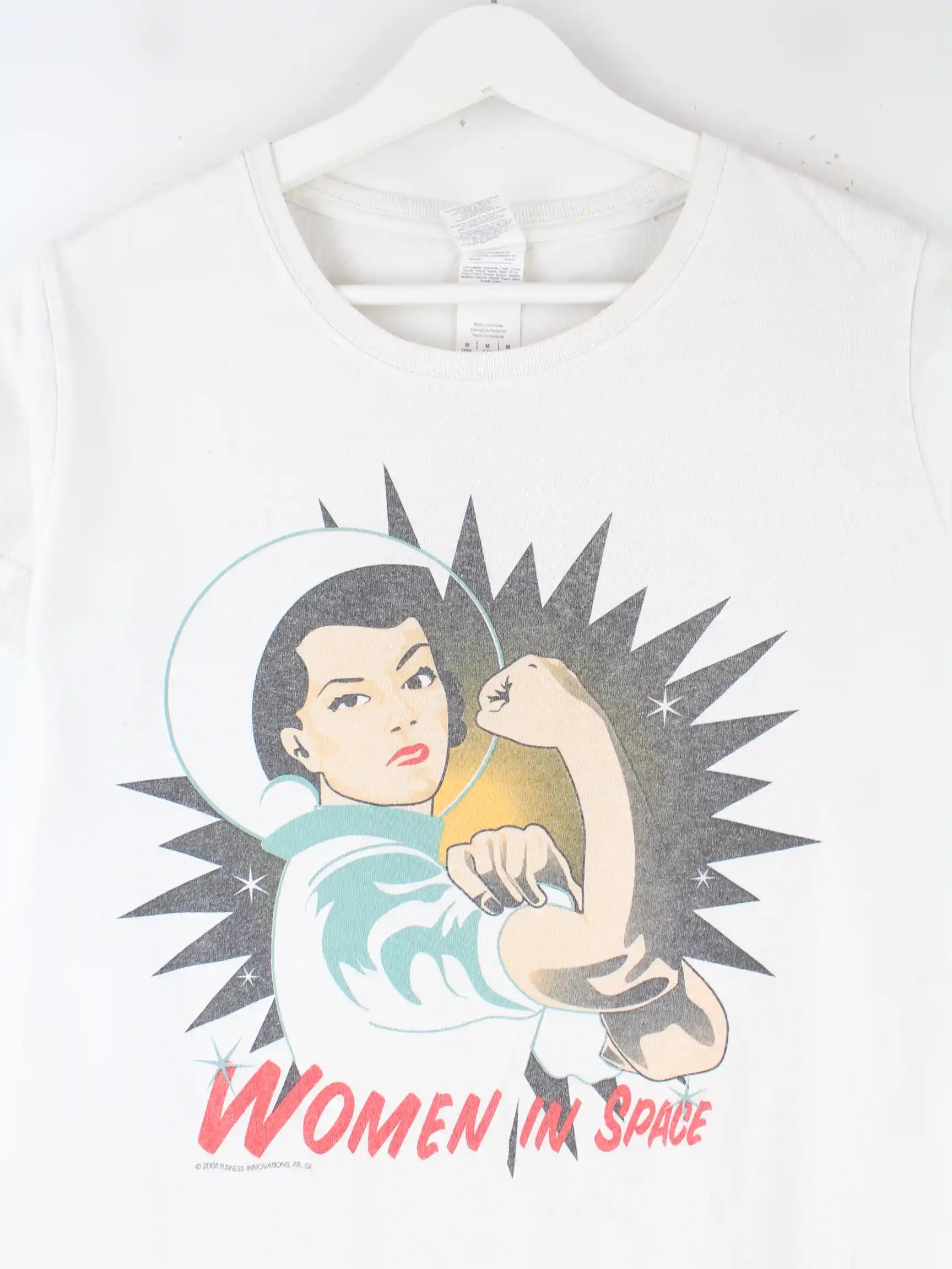 Gildan Damen Women In Space Print T-Shirt Weiß M