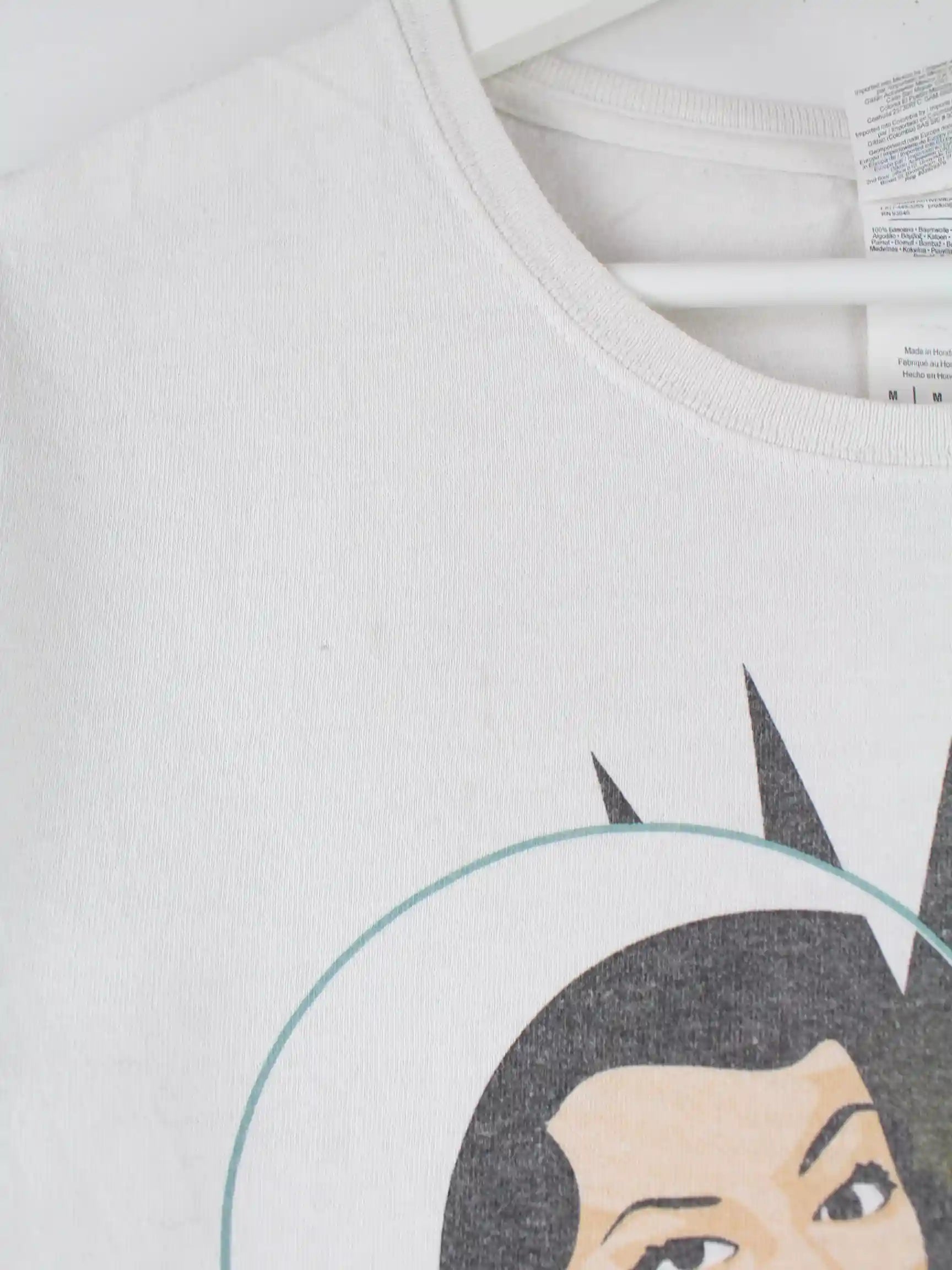 T-Shirt des Labels Gildan in Größe M. Es ist aus Baumwolle gefertigt und in Weiß zu bekommen. Mit seltenem Space Print.