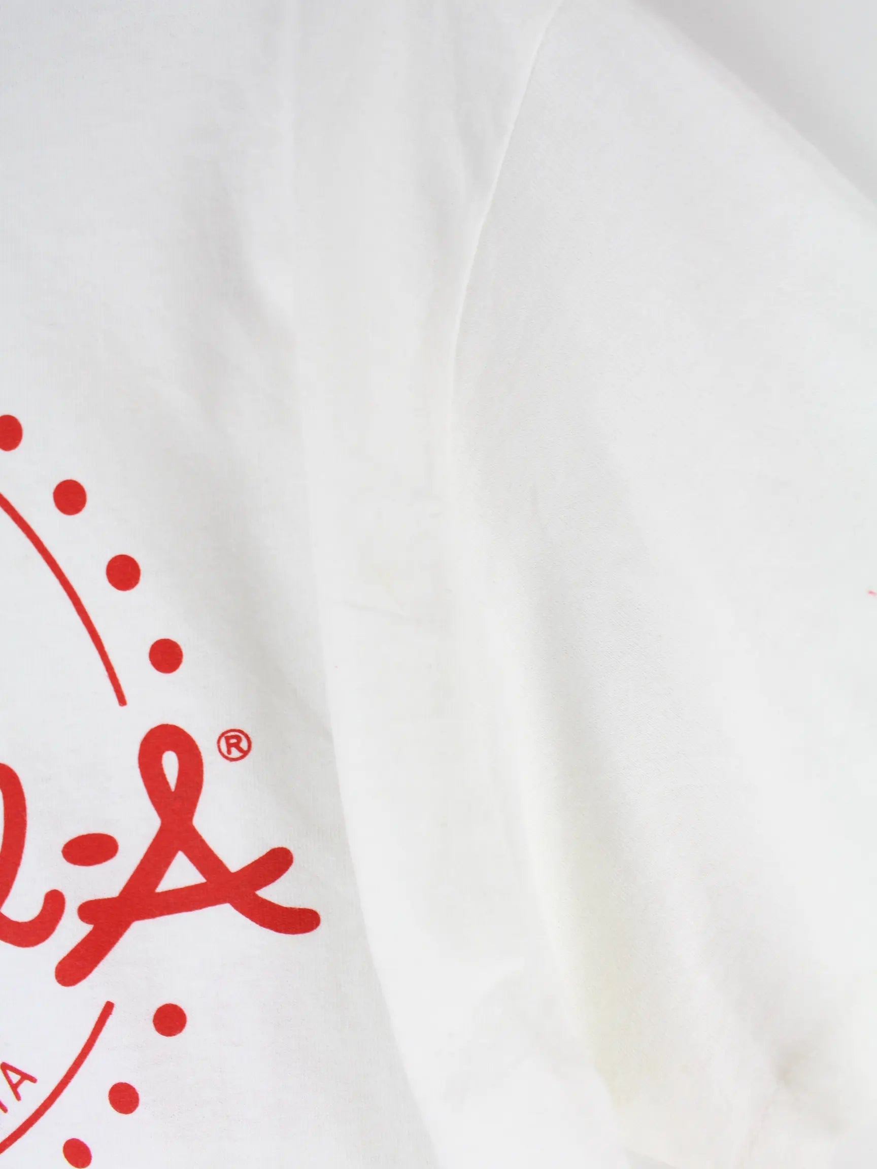 Weißes T-Shirt aus dem Hause Gildan in Größe M. Es ist aus Baumwolle produziert und in gutem Zustand vorrätig. Mit schönem Basketball Print.