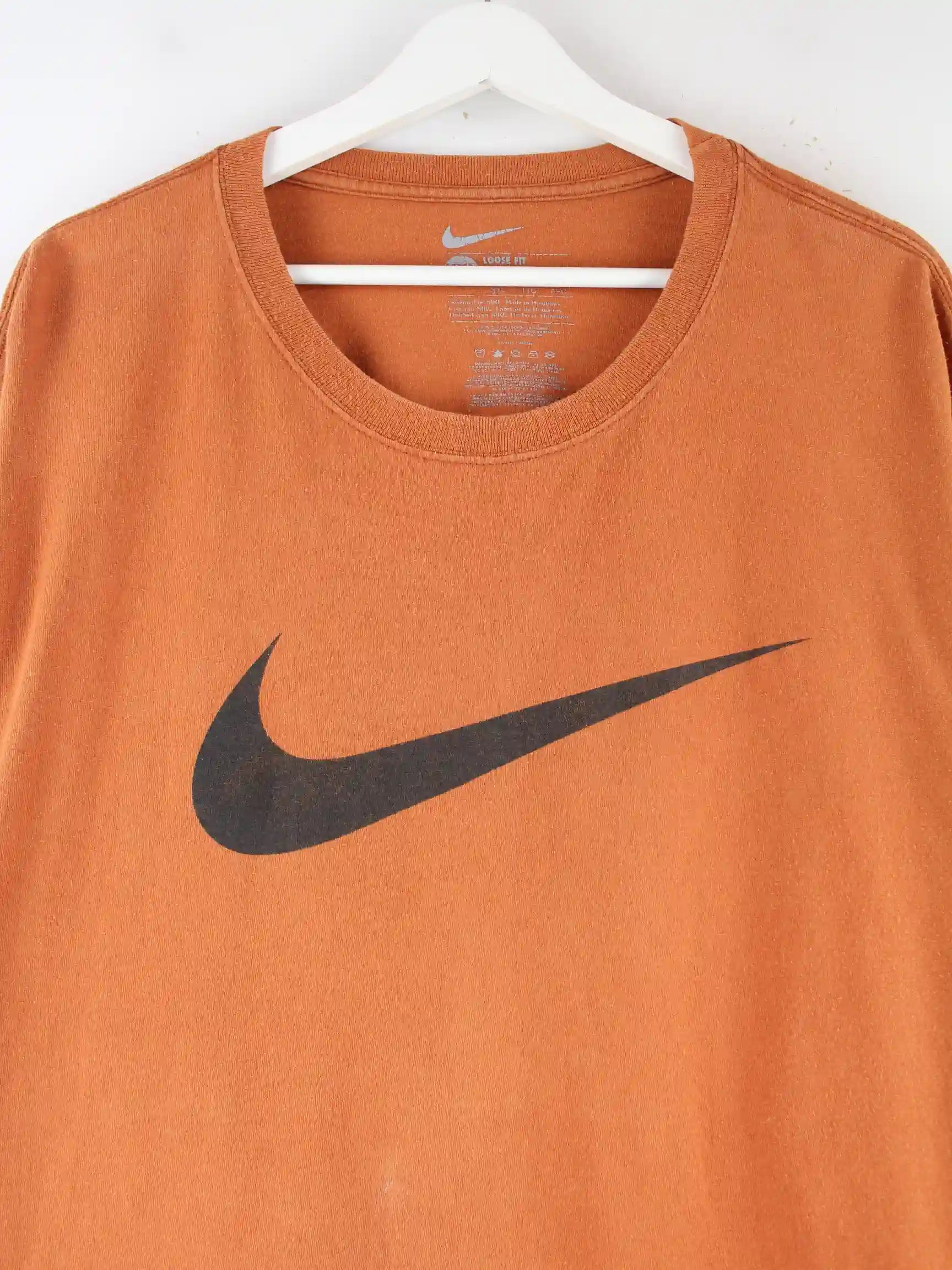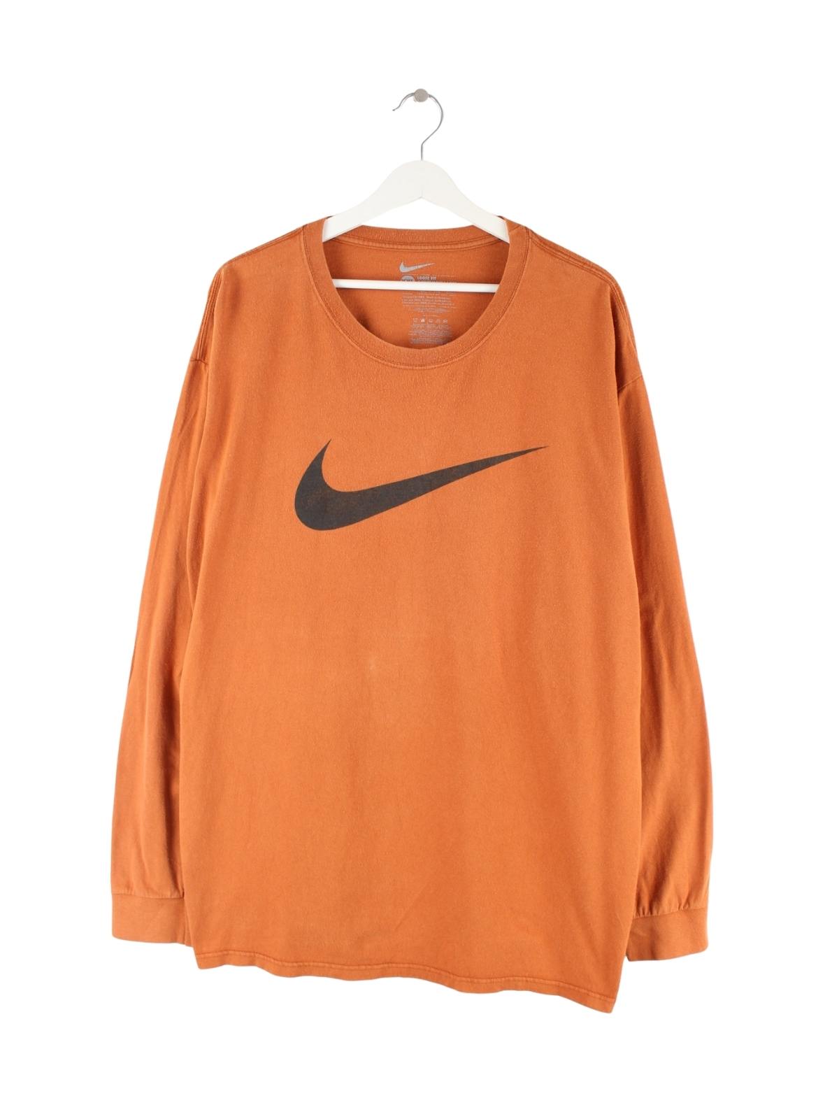 Orangefarbenes Sweatshirt der Brand Nike in Größe XXL. Es ist aus Baumwolle hergestellt und in gutem Zustand zu bekommen. Mit schickem Swoosh Print.