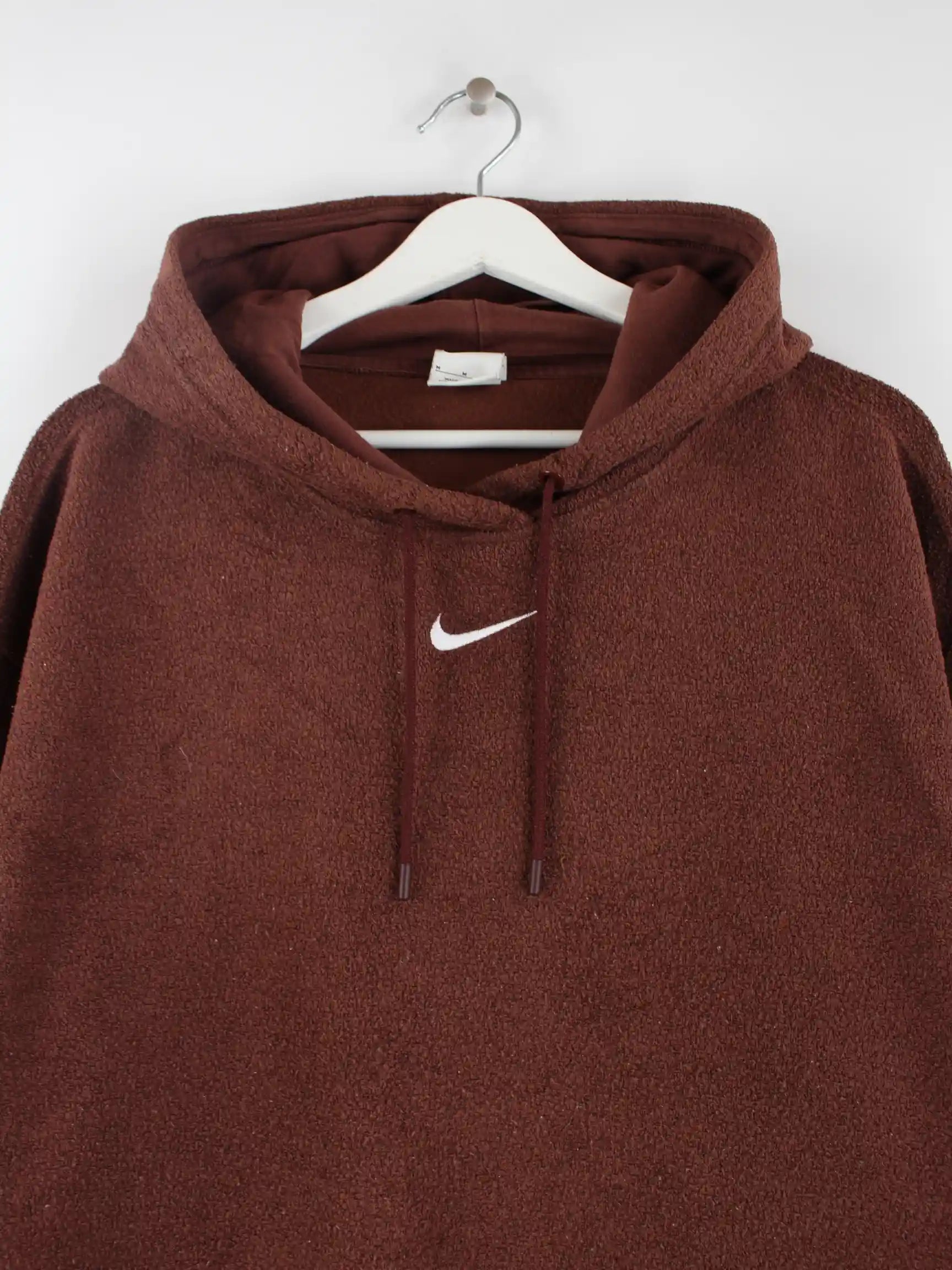 Brauner Hoodie von Nike in Größe M. Er ist aus Synthetik gefertigt und in sehr gutem Zustand vorrätig.