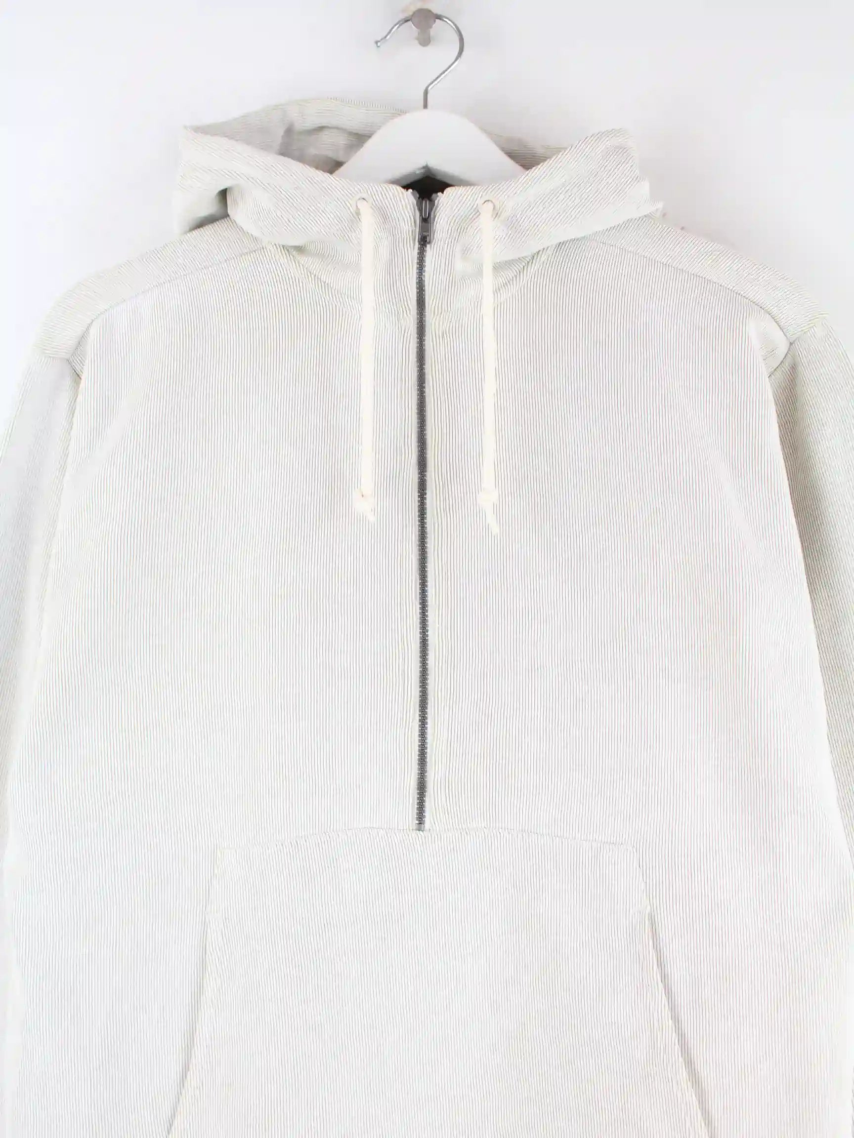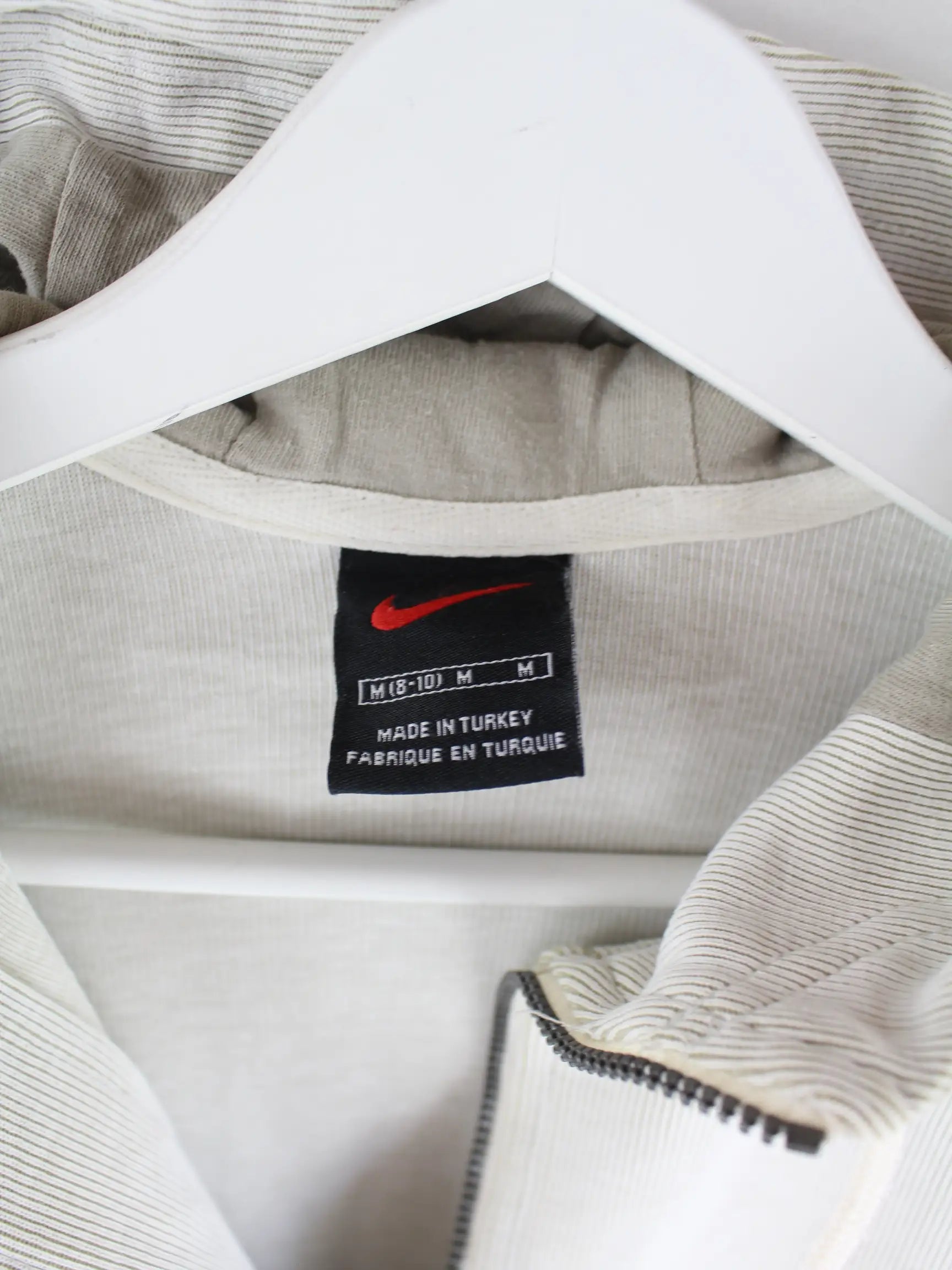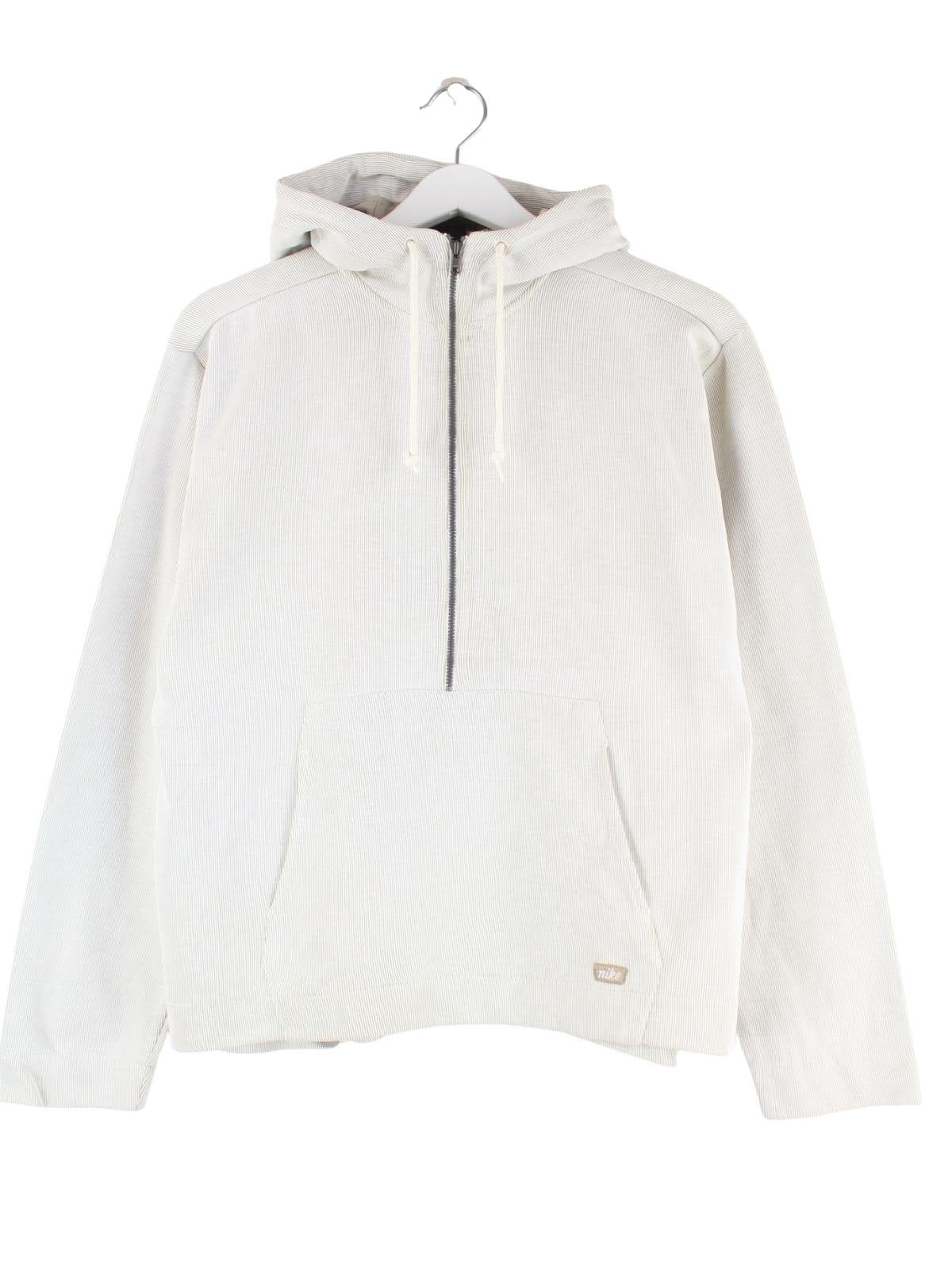 Beigefarbener Hoodie mit half Zip der Brand Nike in Größe M. Er ist aus einer Baumwollmischung produziert und in gutem Zustand zu bekommen.