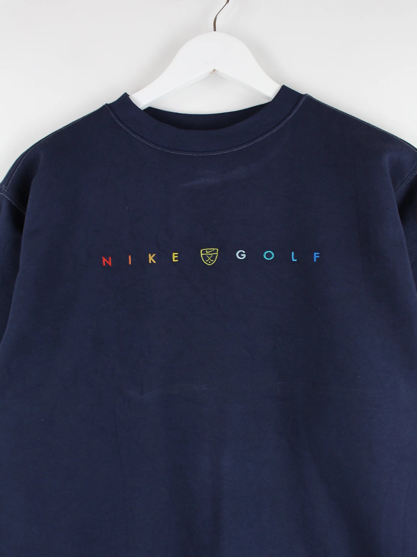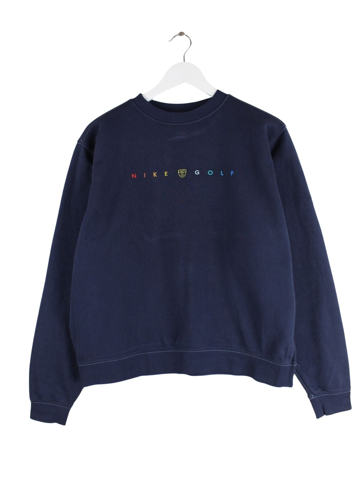 Blauer Sweater der Marke Nike in Größe M. Er ist aus einer Baumwollmischung produziert und in sehr gutem Zustand im Bestand.