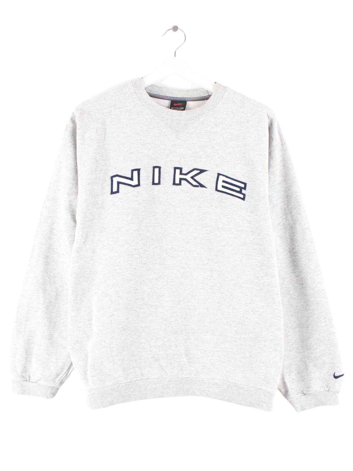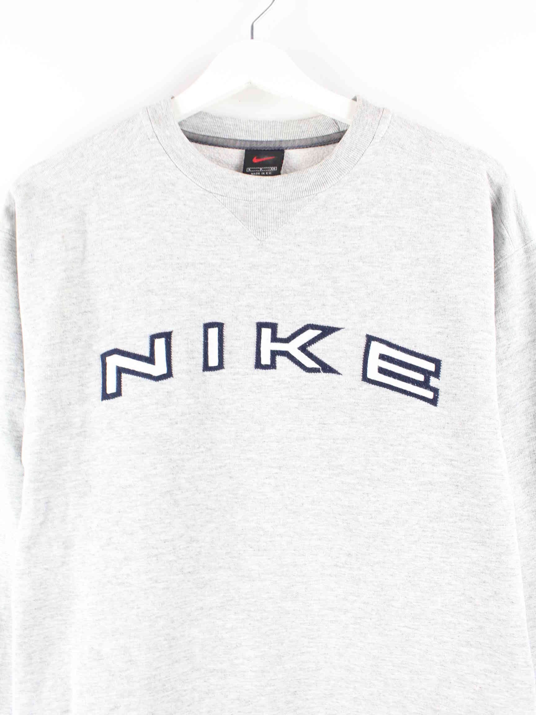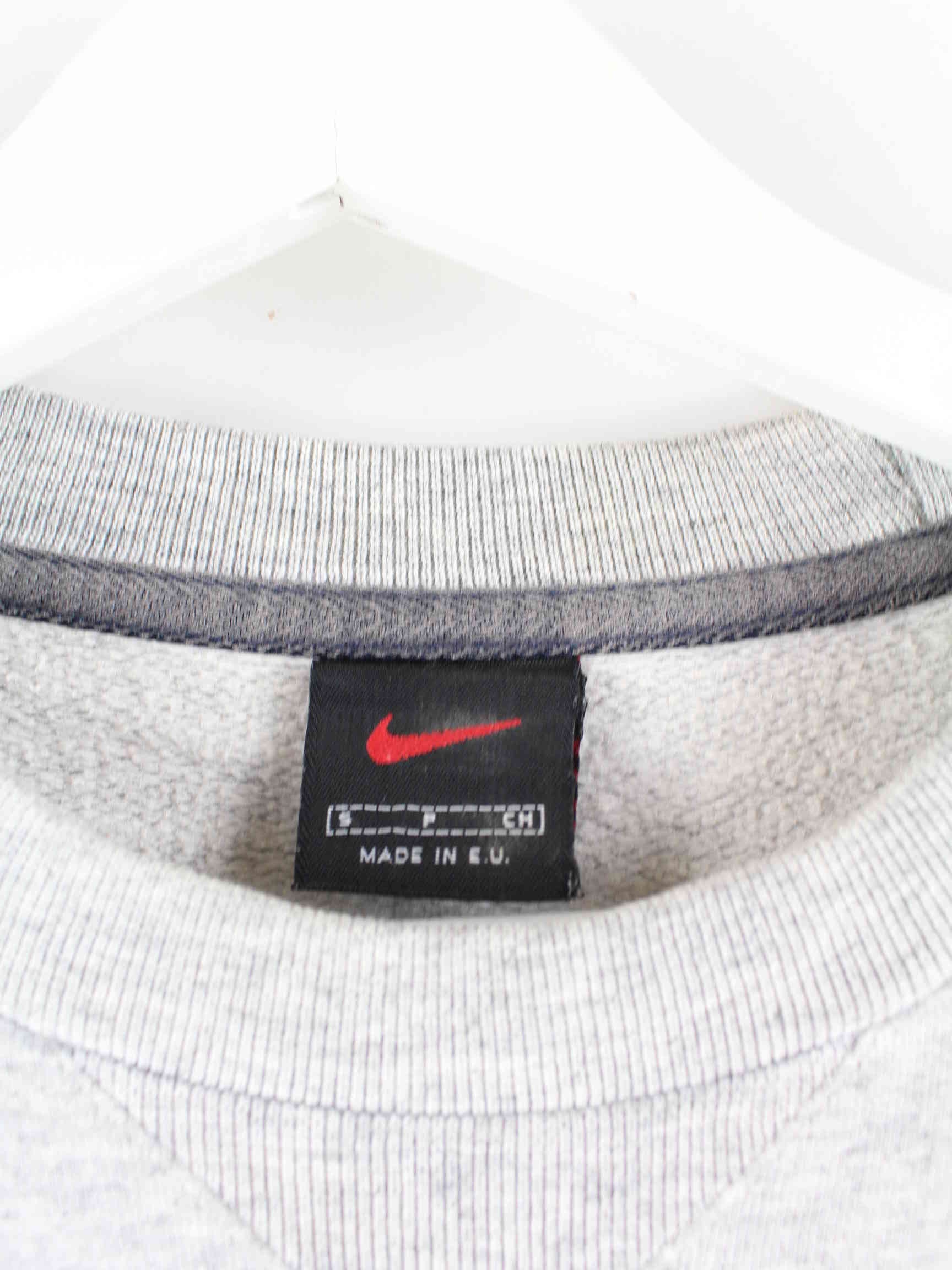 Sweater vom Brand Nike in Größe S aus Anfang der 2000'er. Er ist aus einer Baumwollmischung gefertigt und in Grau zu bekommen.