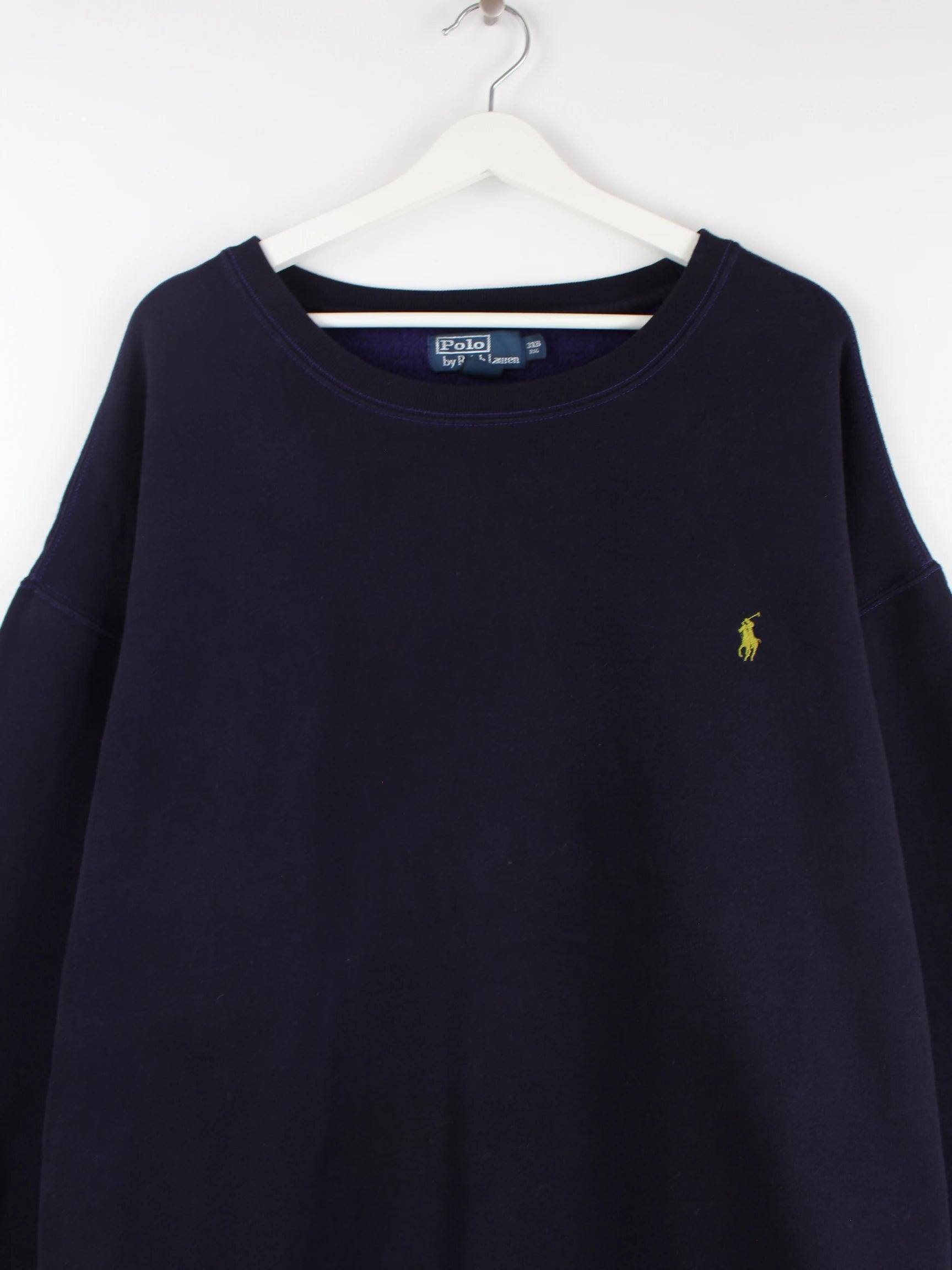 Lilafarbener Sweater vom Label Ralph Lauren in Größe 3XL. Er ist aus einer Baumwollmischung produziert. Den Zustand würden wir als 'In Ordnung' bezeichnen (vergl. Bilder).