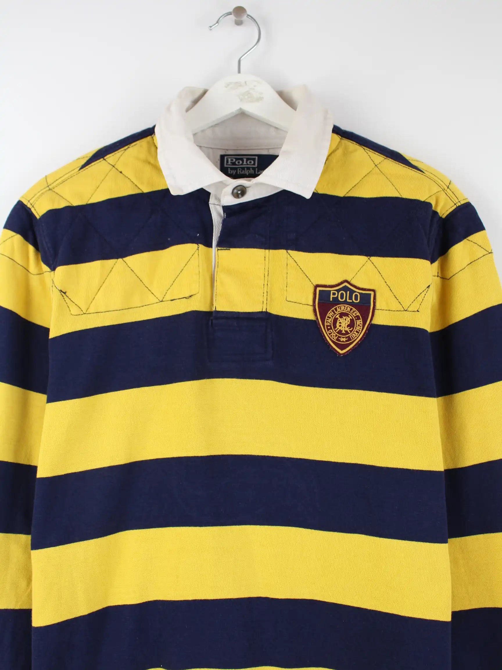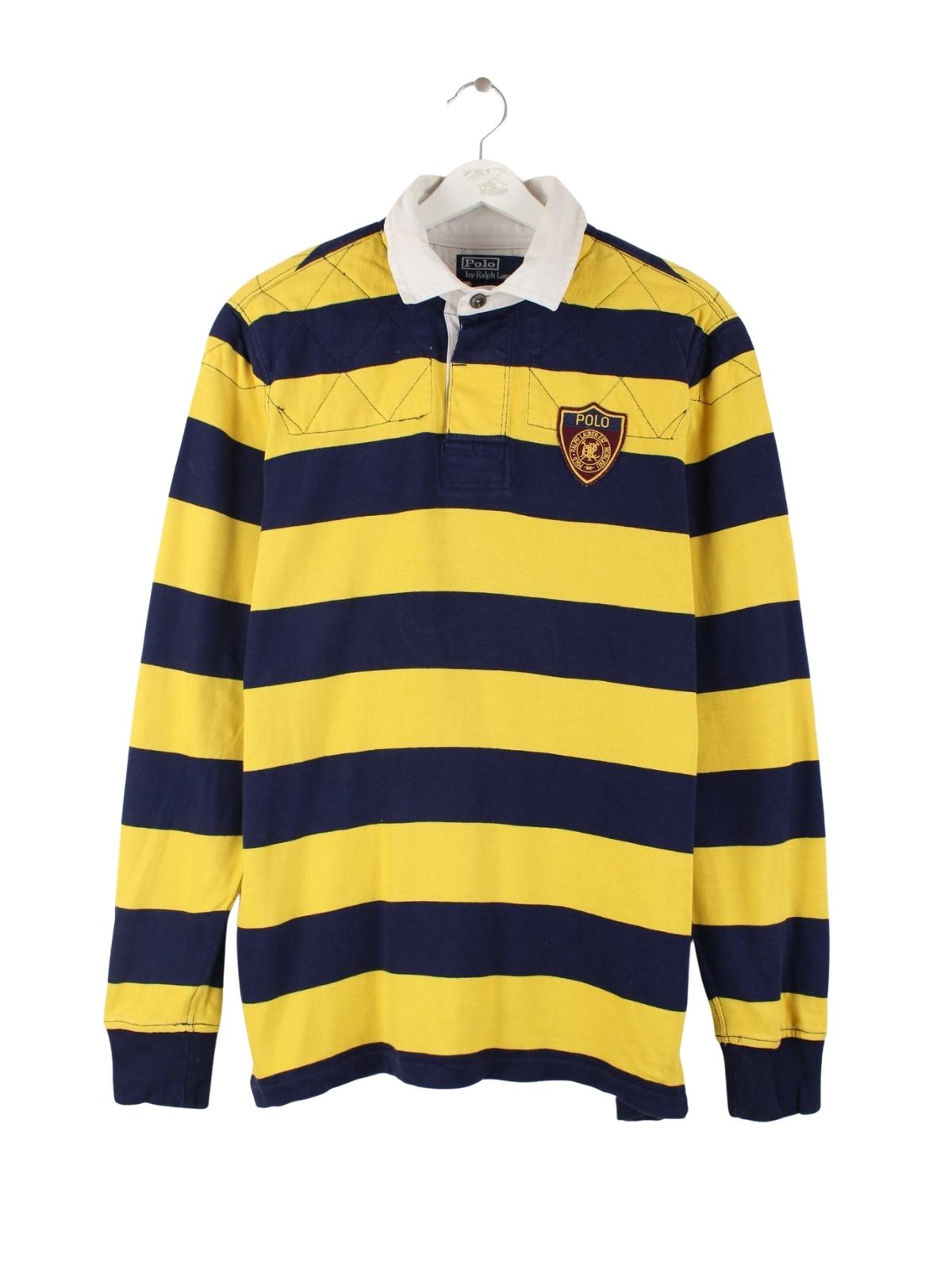 Rugby Langarm Poloshirt der Brand Ralph Lauren in Größe M. Es ist aus Baumwolle hergestellt und in Gelb / Blau zu bekommen.