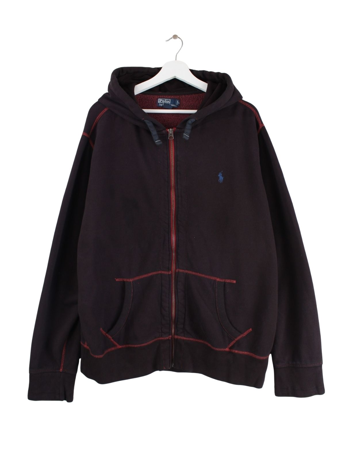 Roter Hoodie mit Zip der Brand Ralph Lauren in Größe XL. Er ist aus einer Baumwollmischung angefertigt und in sehr gutem Zustand im Bestand.