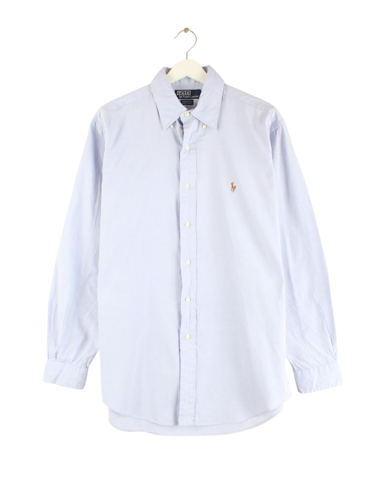 Blaues Hemd aus dem Hause Ralph Lauren in Größe M. Es ist aus Baumwolle und in sehr gutem Zustand im Bestand.