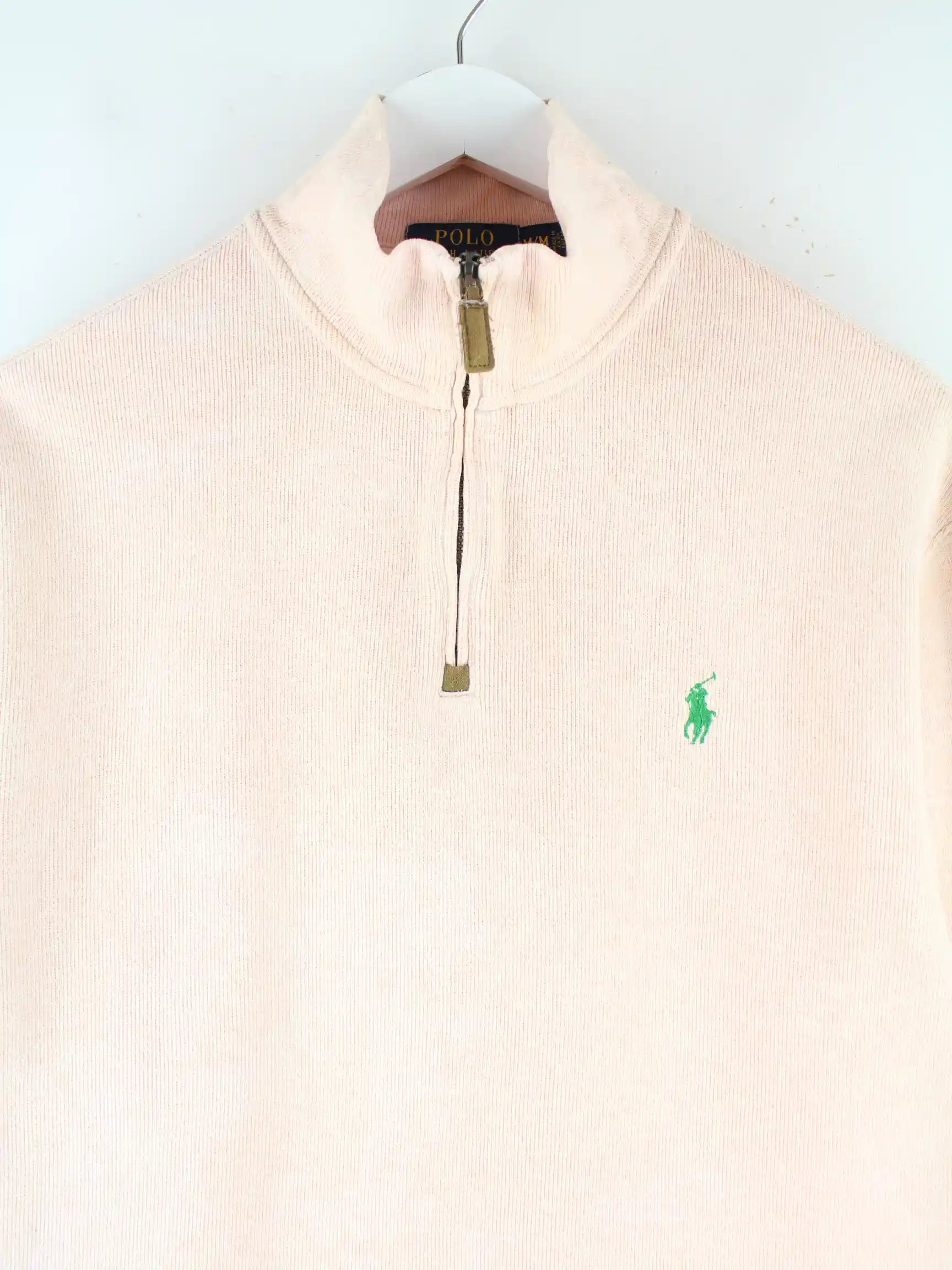 Sweater vom Label Ralph Lauren mit halbem Reißverschluß in Größe M. Er ist aus Baumwolle gemacht und in Rosa vorrätig.