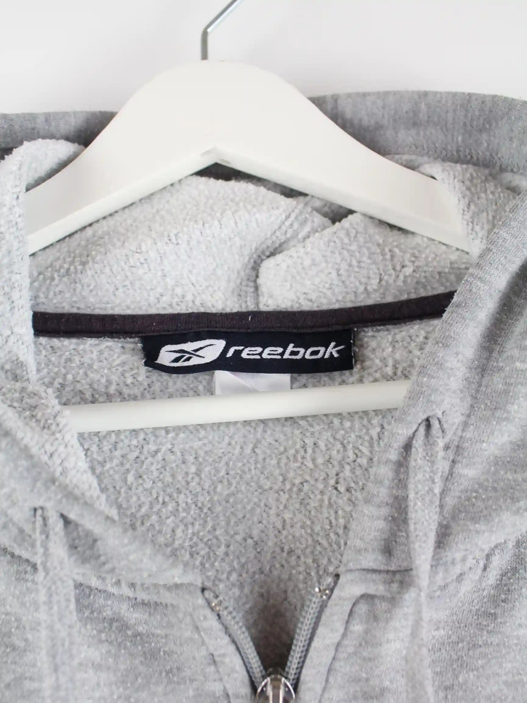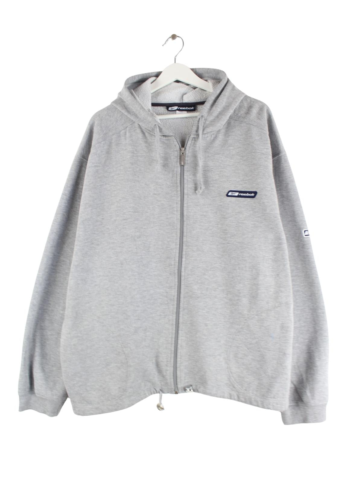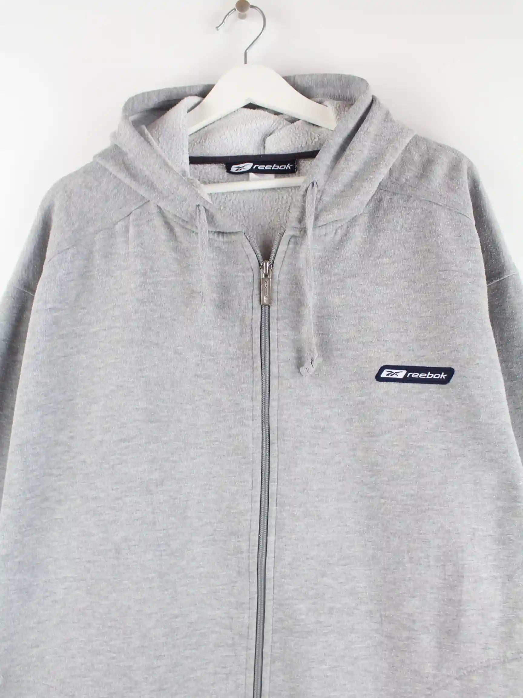Grauer Hoodie mit Reißverschluß der Brand Reebok in Größe XL. Er ist aus einer Baumwollmischung gefertigt und in sehr gutem Zustand zu haben.