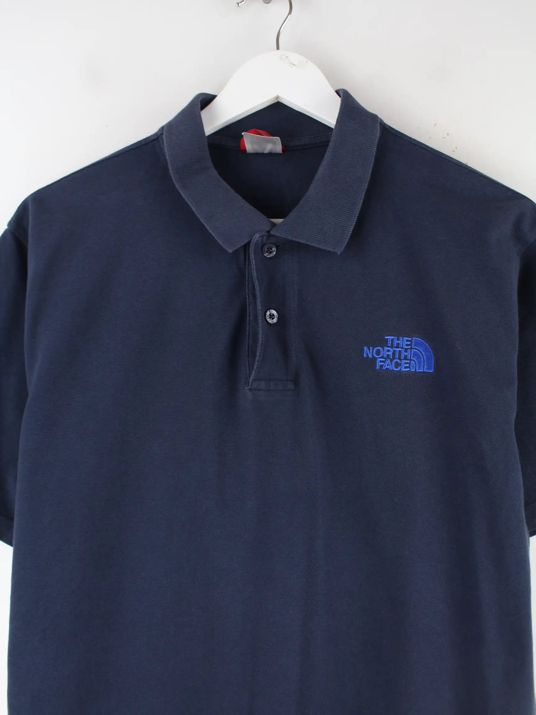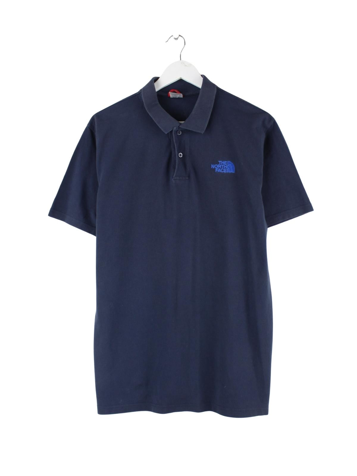 Blaues Poloshirt der Marke The North Face in Größe L. Es ist aus Baumwolle hergestellt und in gutem Zustand vorrätig.