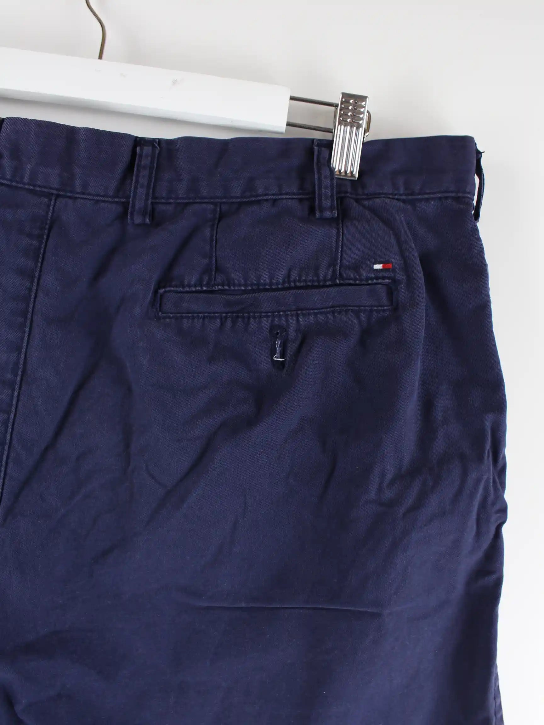 Blaue Shorts vom Label Tommy Hilfiger in Größe W38. Sie sind aus Baumwolle hergestellt und in sehr gutem Zustand im Bestand.