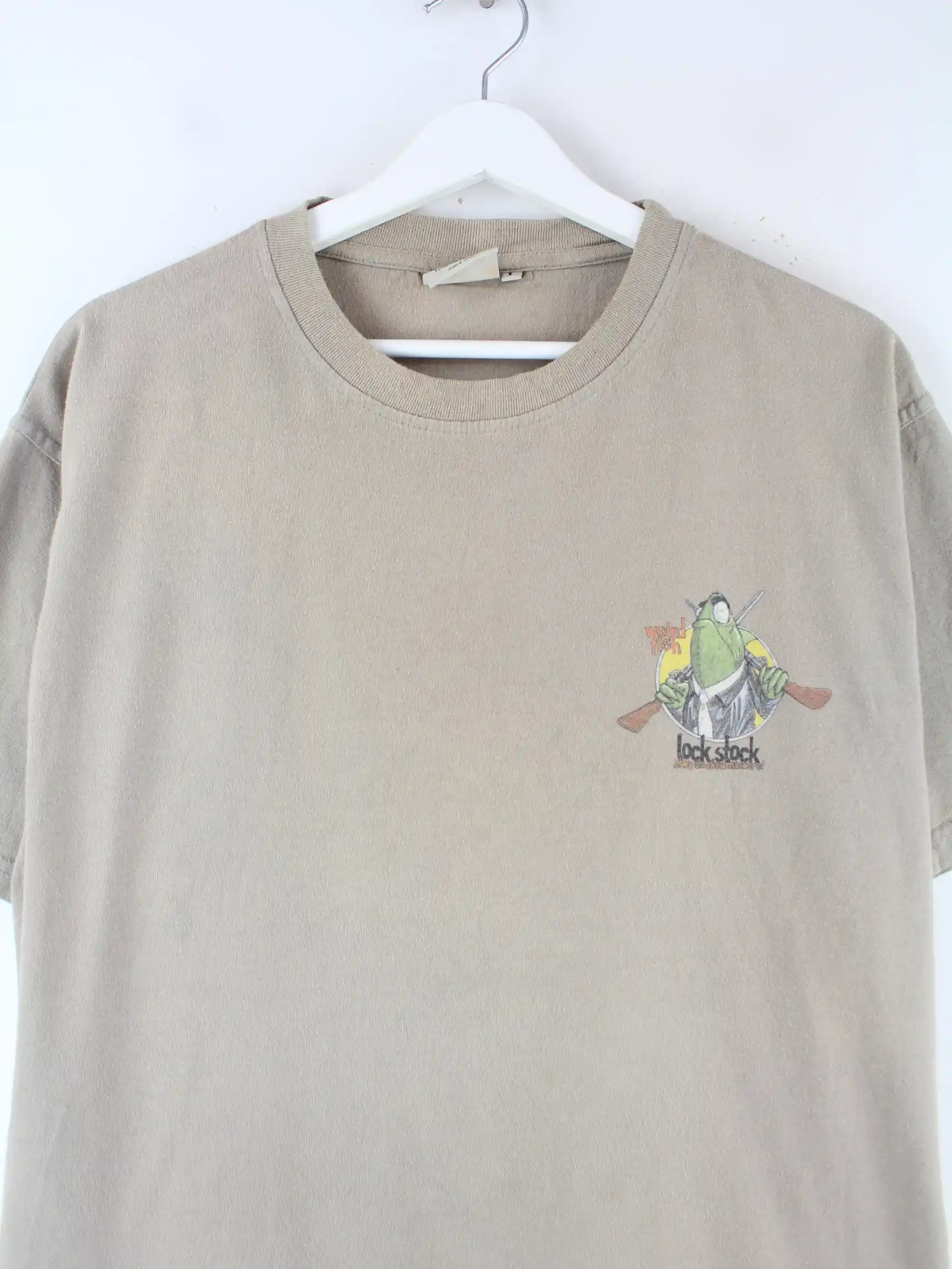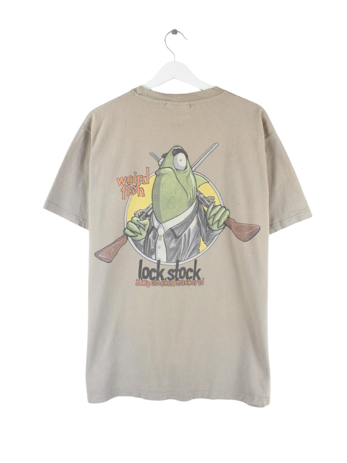 Braunes T-Shirt der Brand Weird Fish in Größe L. Es ist aus Baumwolle gefertigt und in gutem Zustand vorrätig. Mit seltenem Print.