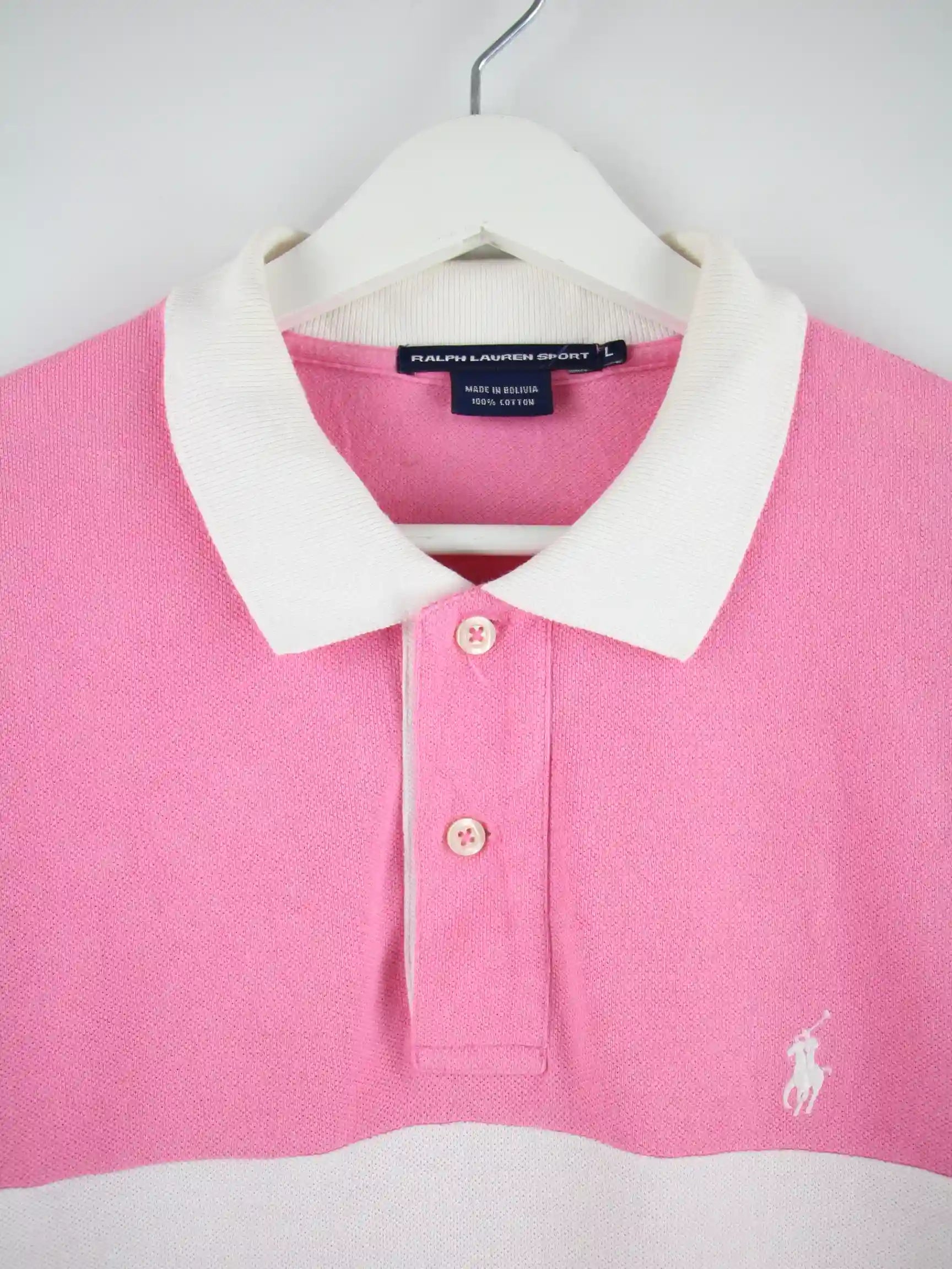 Pinkfarbenes Poloshirt vom Label Ralph Lauren in Größe L. Es ist aus Baumwolle angefertigt und in gutem Zustand zu haben.