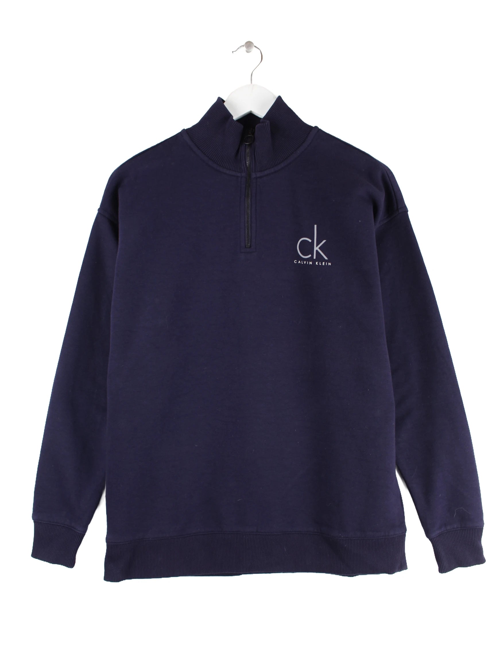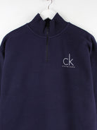 Sweater aus dem Hause Calvin Klein mit kurzem Reißverschluß in Größe S. Er ist aus einer Baumwollmischung produziert und in Blau vorrätig. Mit tollem undefined Print.