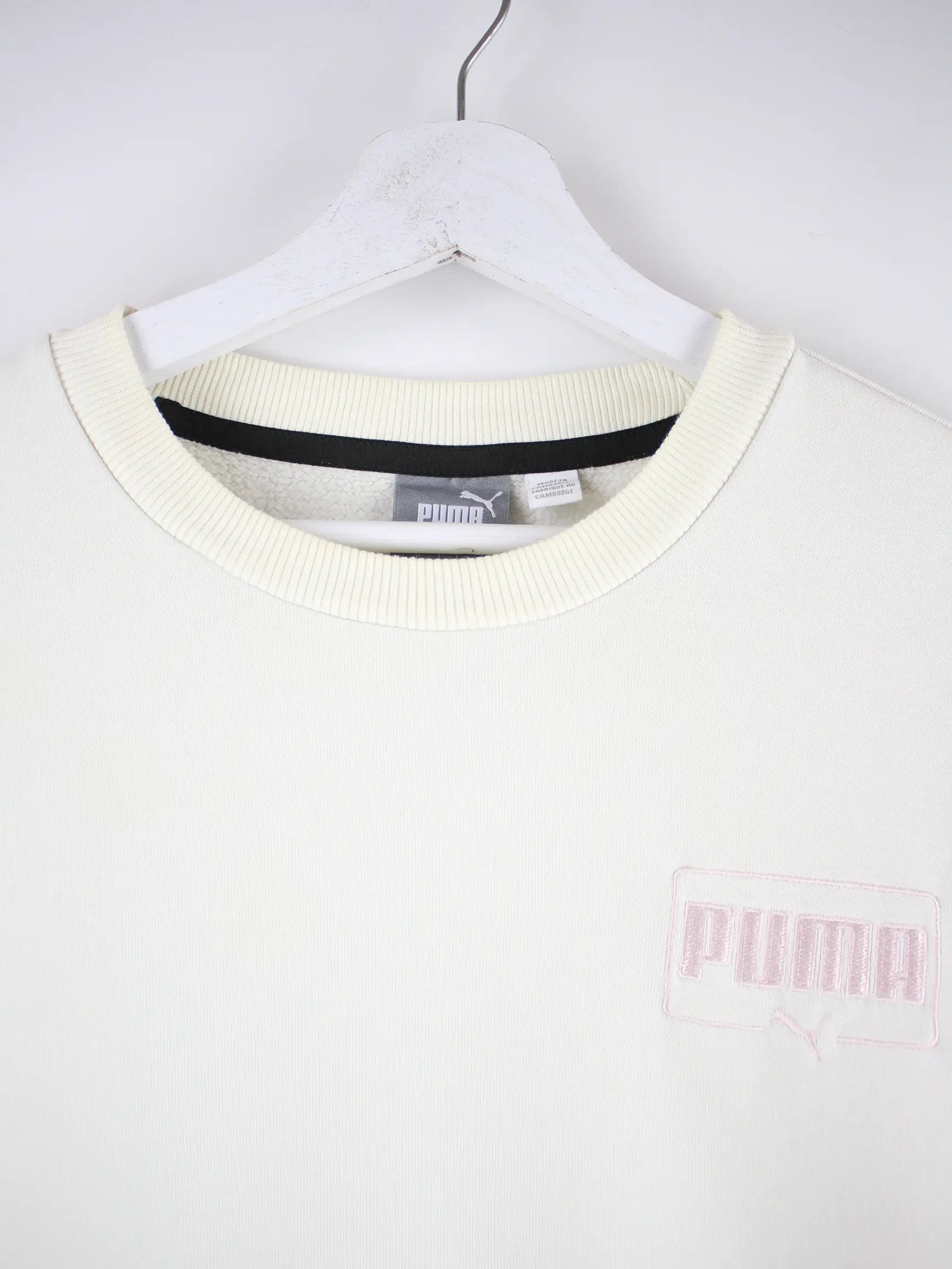 Weißer Sweater von Puma in Größe M. Er ist aus einer Baumwollmischung hergestellt. Den Zustand würden wir als 'In Ordnung' bezeichnen (vergl. Bilder).