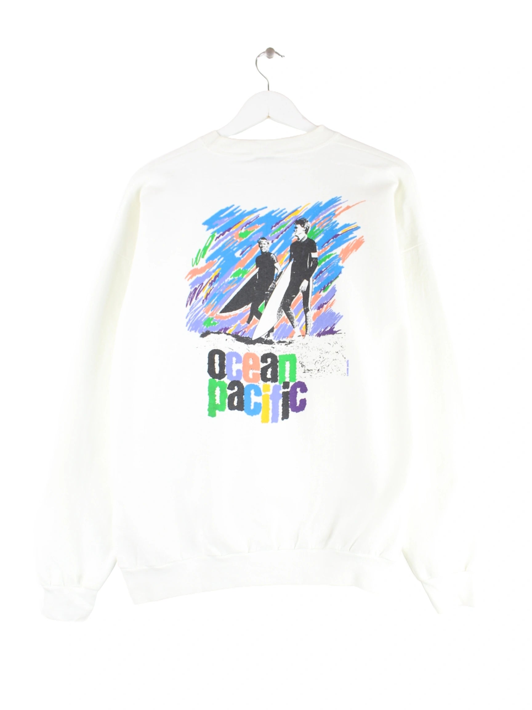 Vintage 90s Ocean Pacific Print Sweater Weiß XL