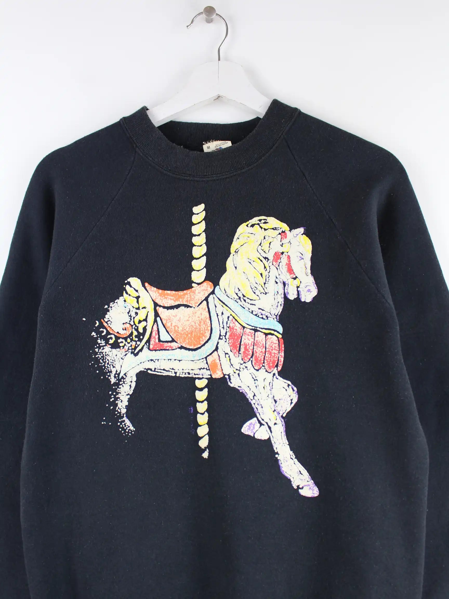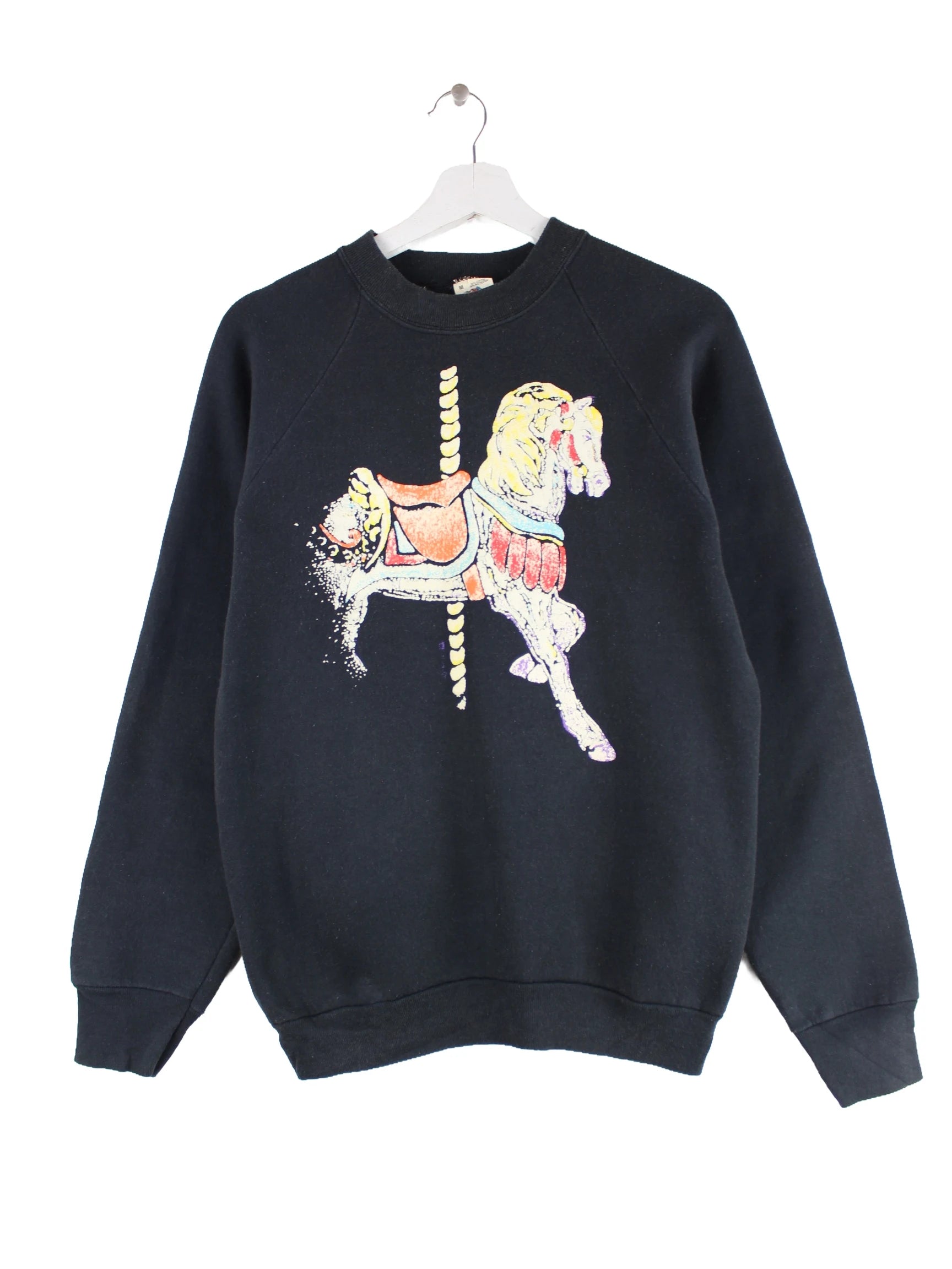 Fruit of the Loom 80s Vintage Caroussel Horse Print Sweater Schwarz M