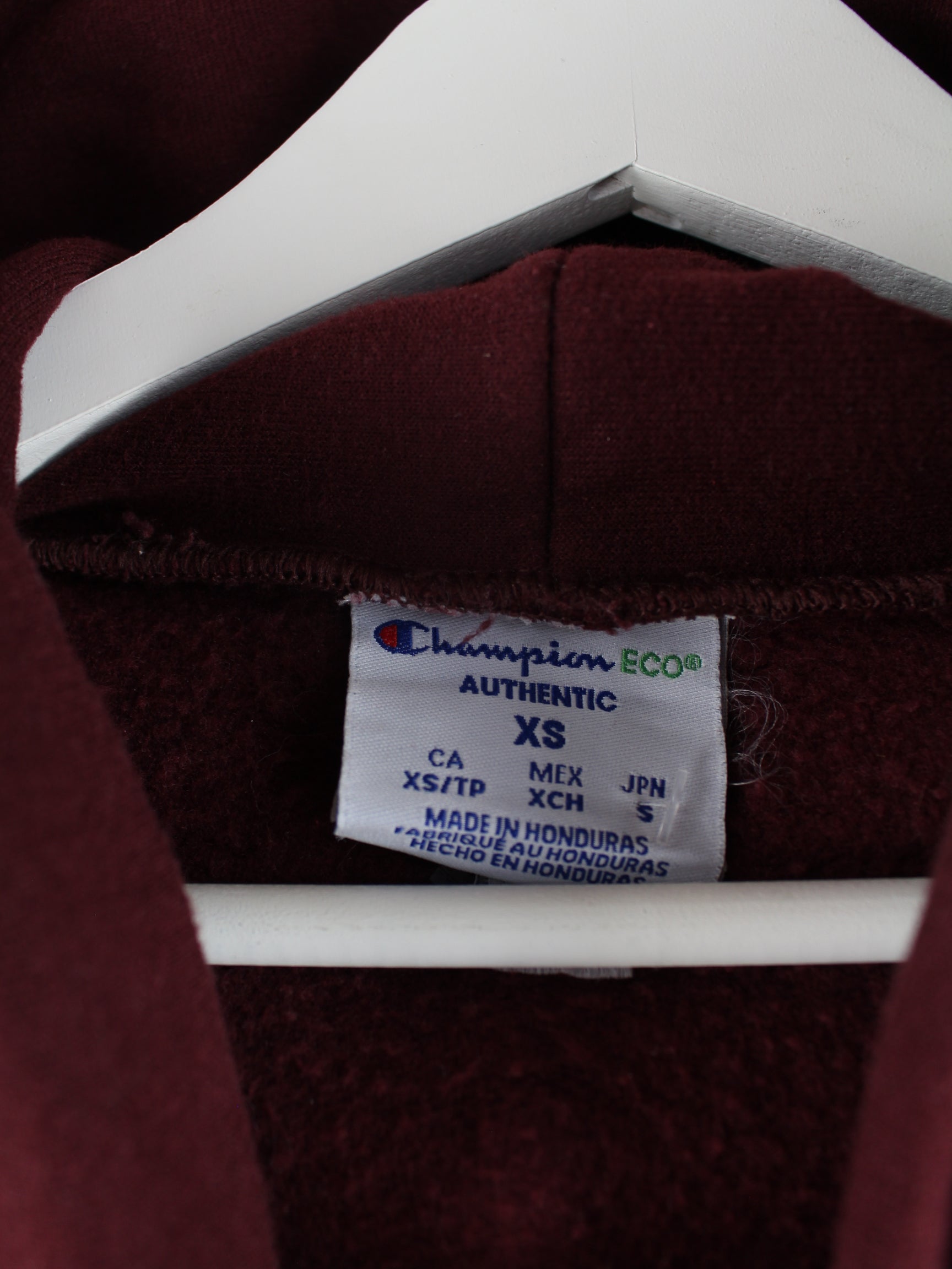 Roter Hoodie vom Label Champion in Größe XS. Er ist aus einer Baumwollmischung gefertigt und in sehr gutem Zustand zu haben. Mit chiquem College Print.