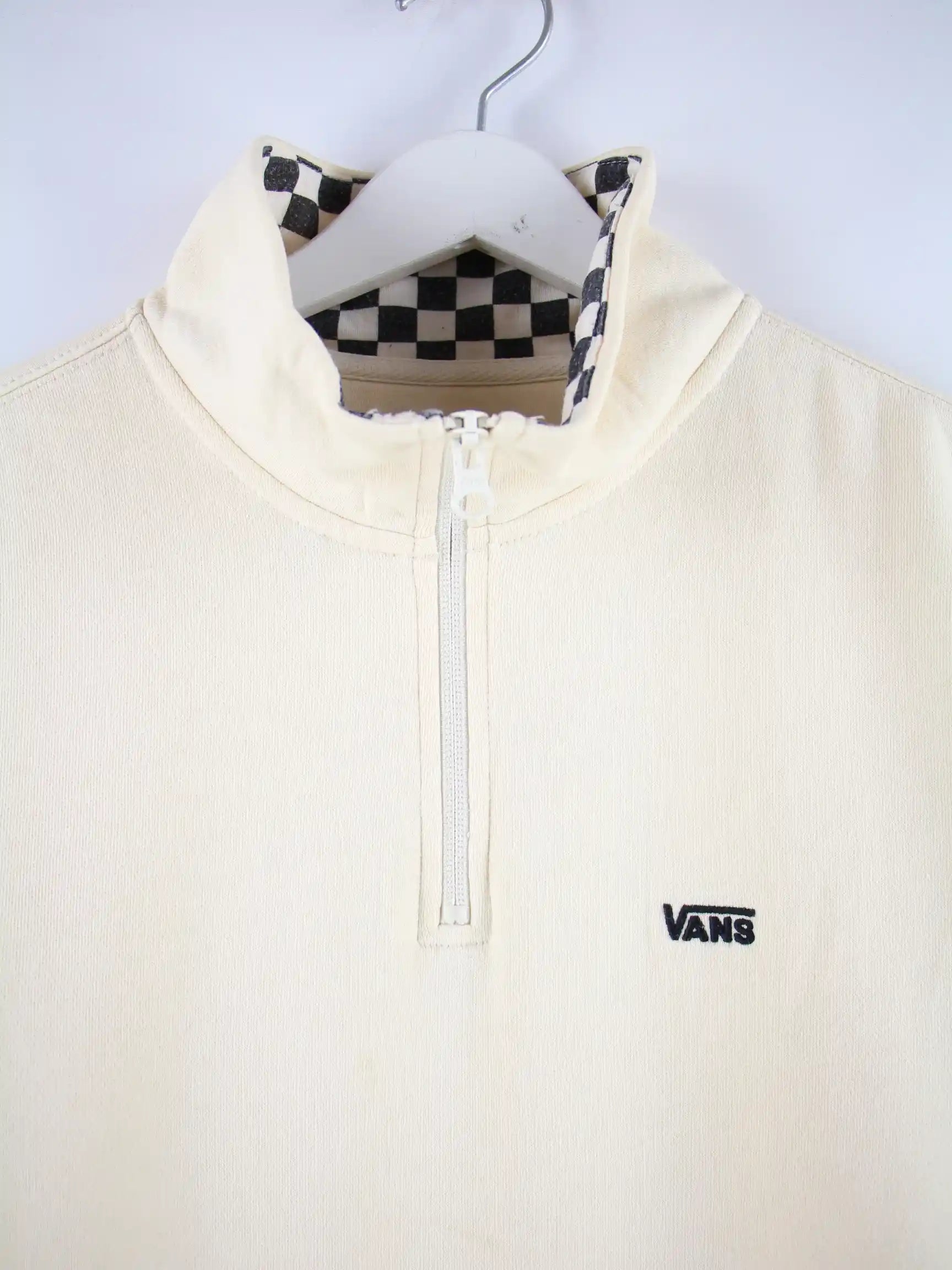 Sweater vom Label Vans mit half Zip in Größe S. Er ist aus einer Baumwollmischung hergestellt und in Beige im Bestand.