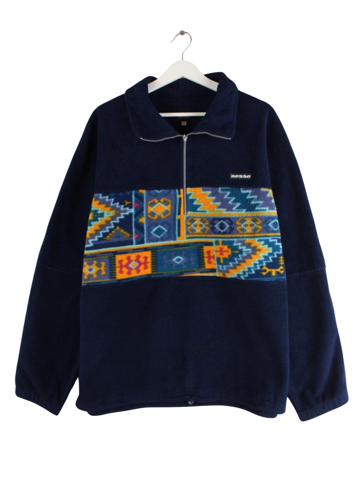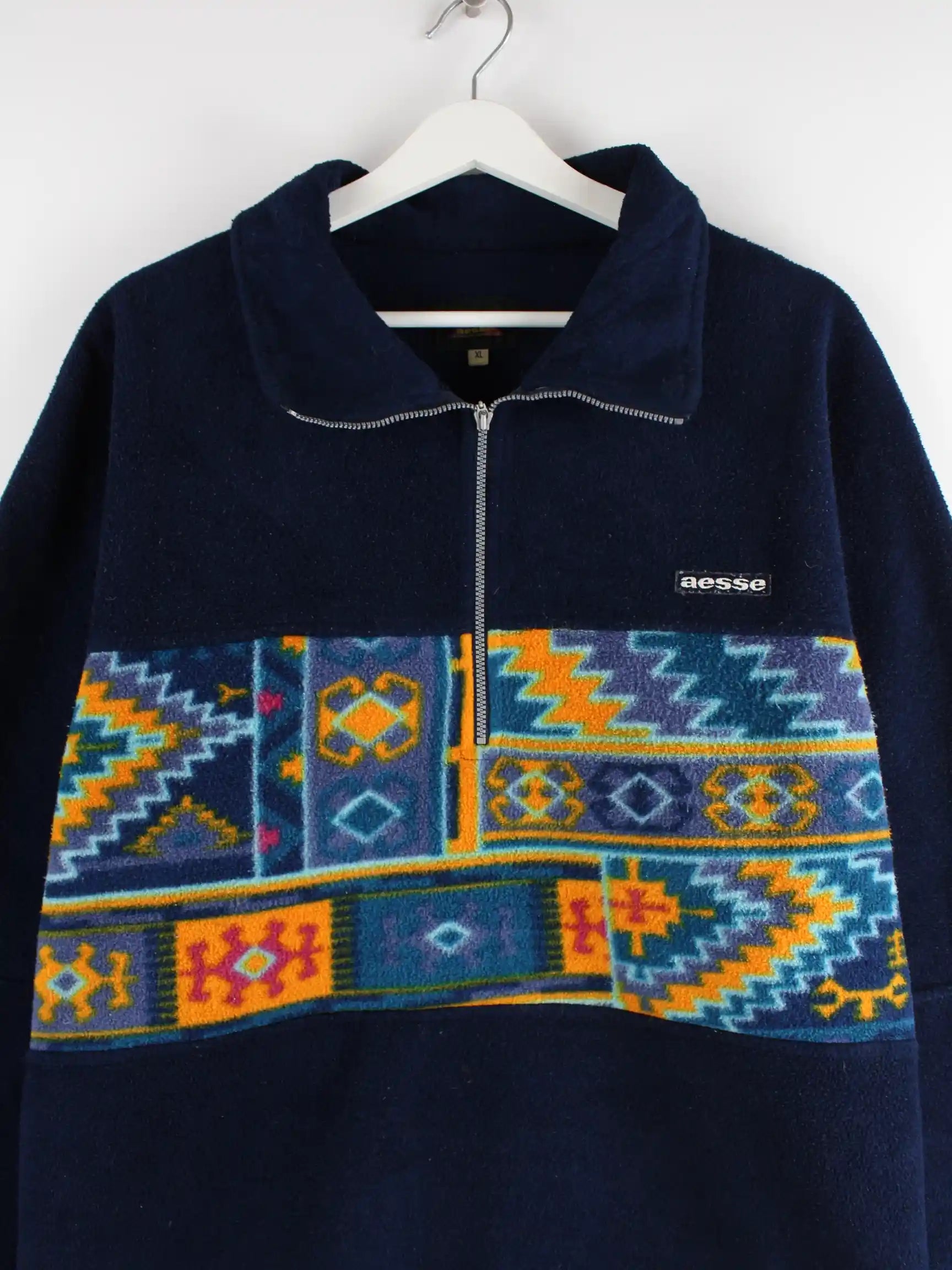 Vintage 90s Crazy Pattern Half Zip Fleece Sweater Blau L