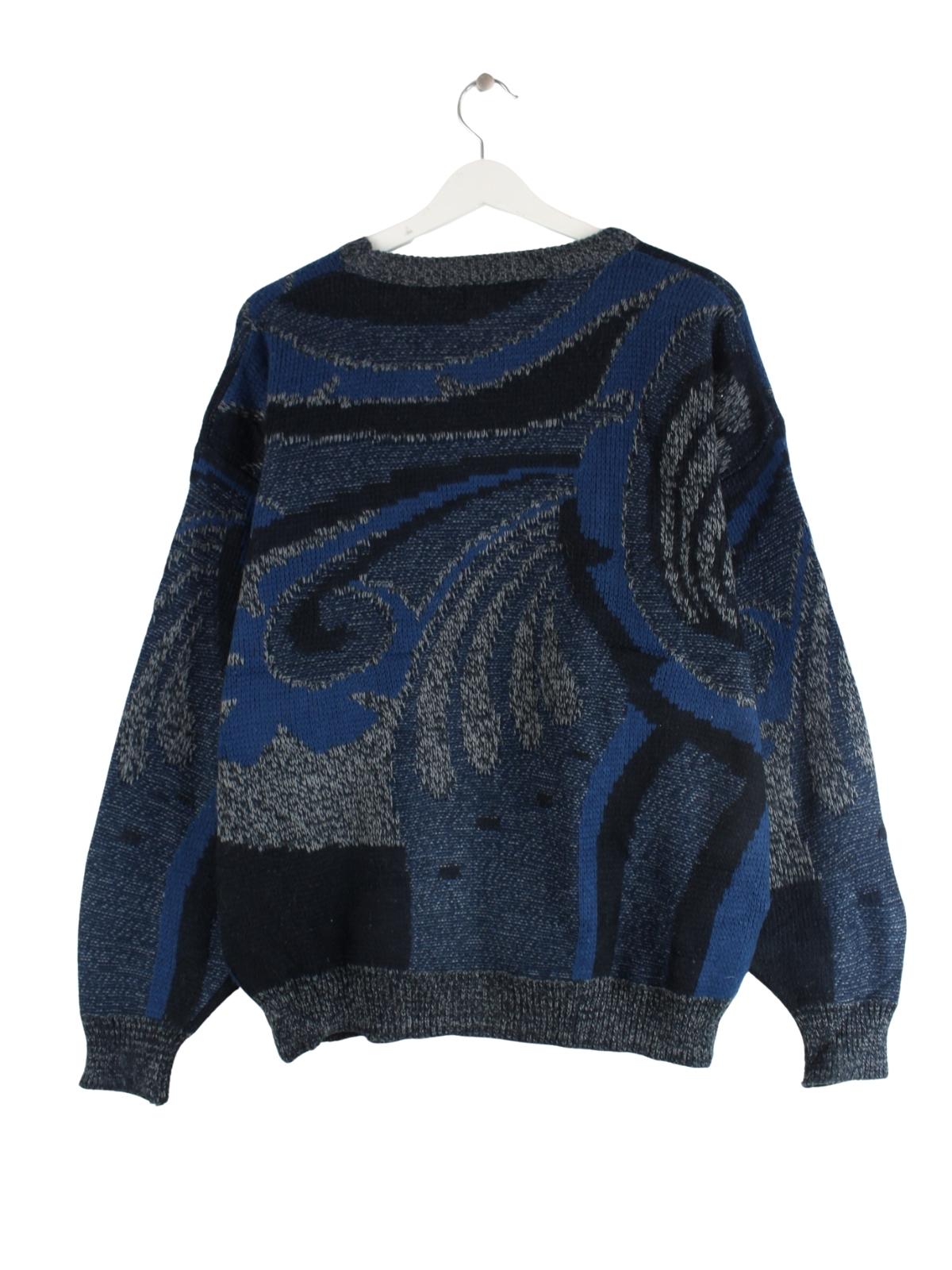 Vintage 90s Crazy Pattern Strick Pullover Blau XL