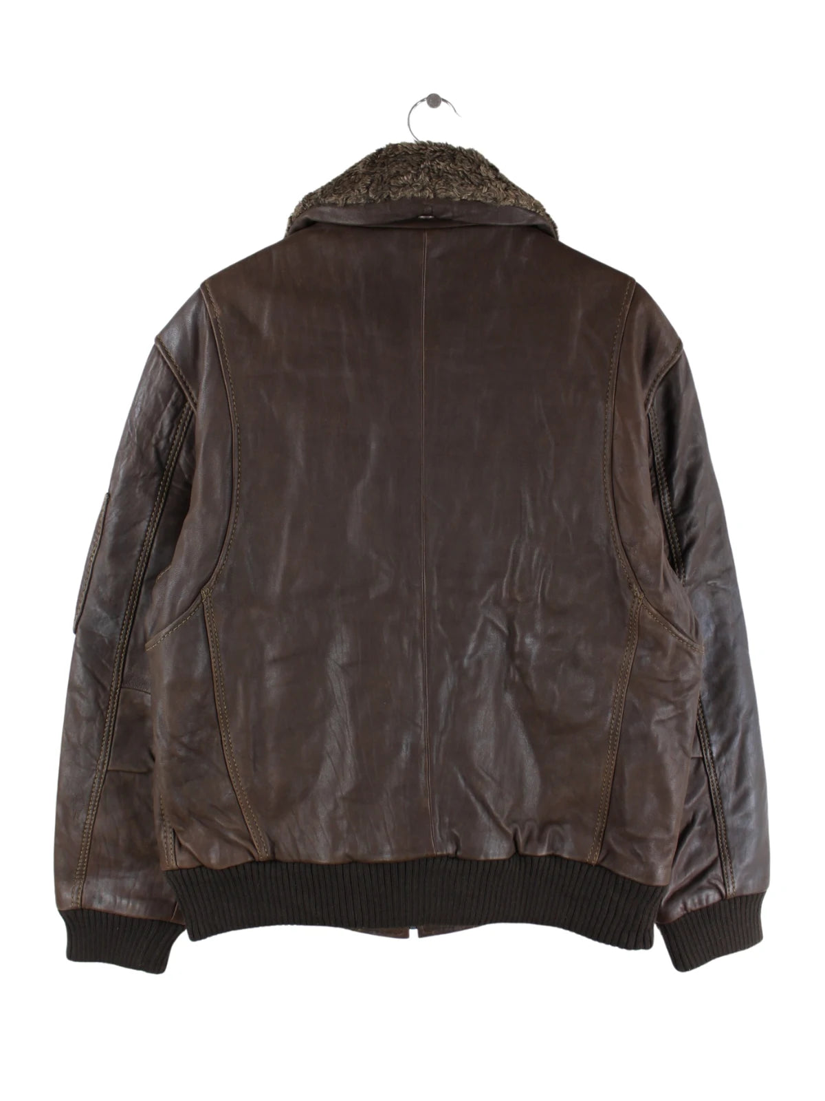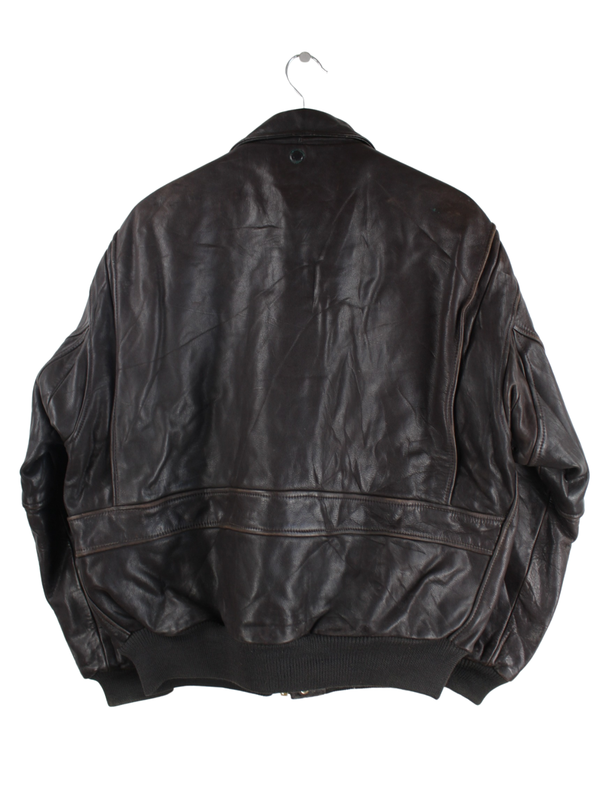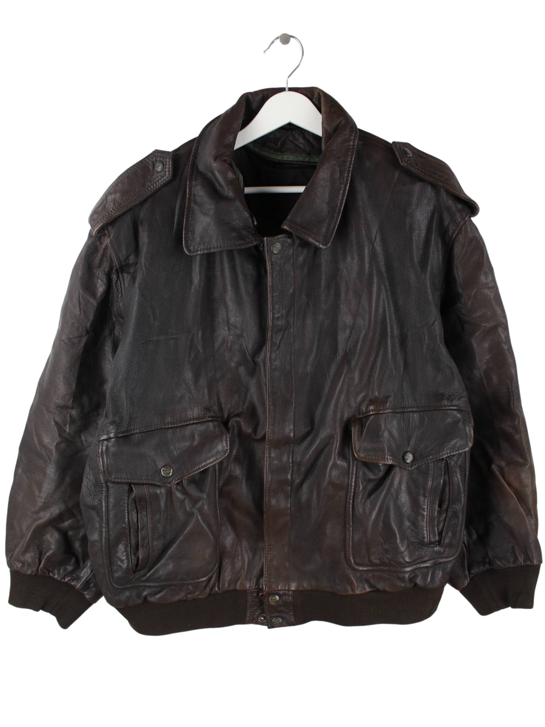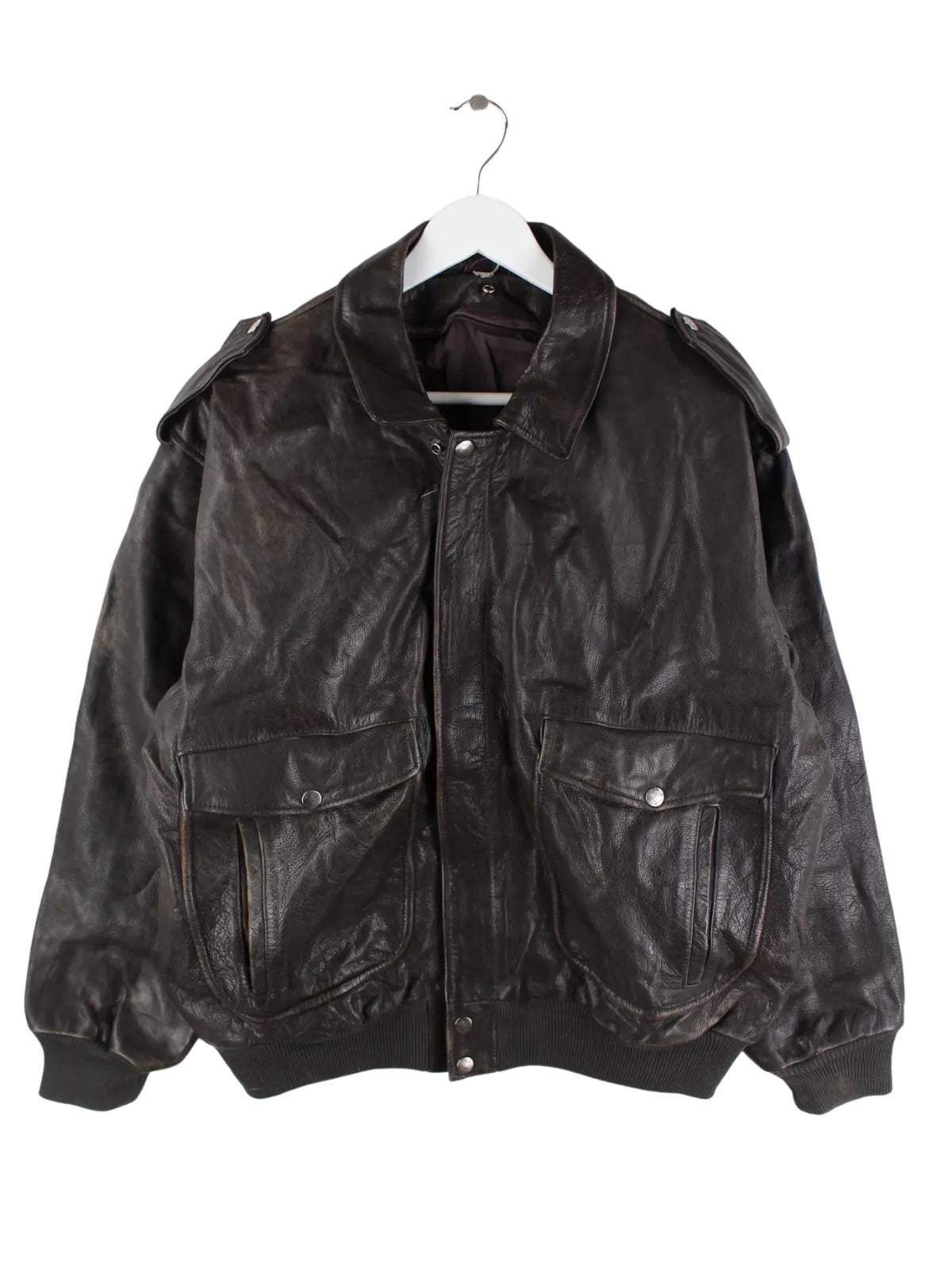 Vintage 90s Leder Bomber Piloten Jacke Braun L