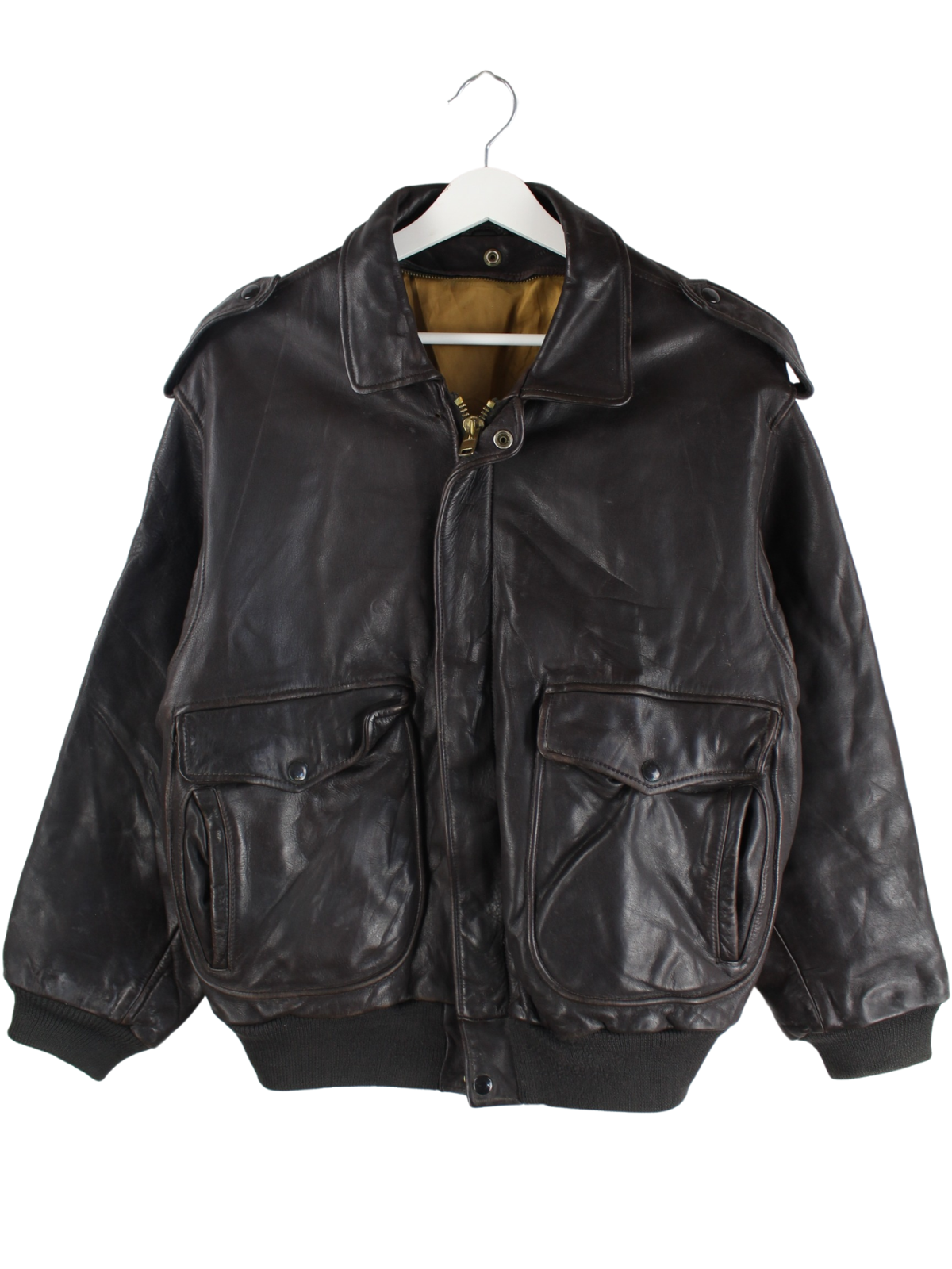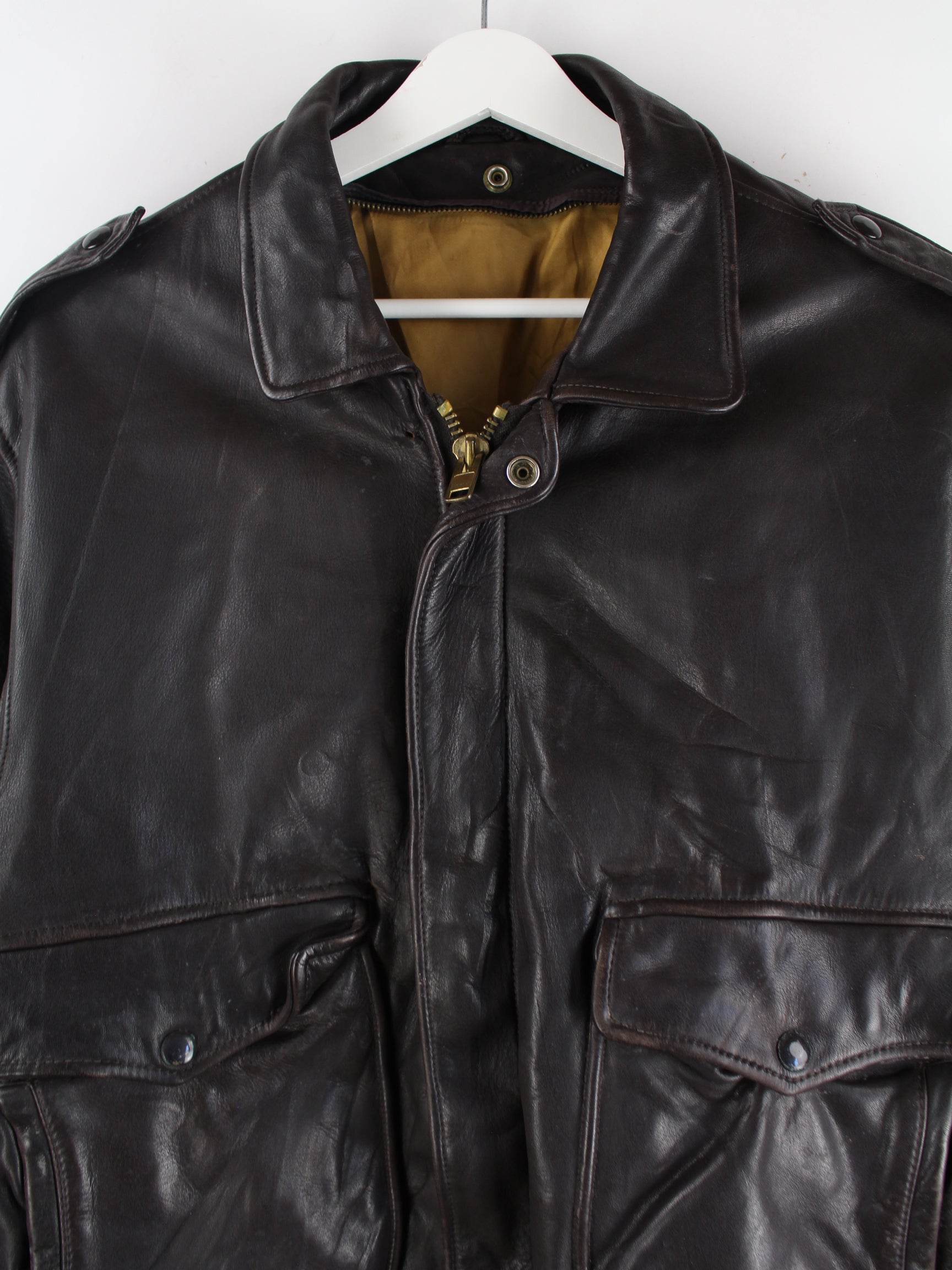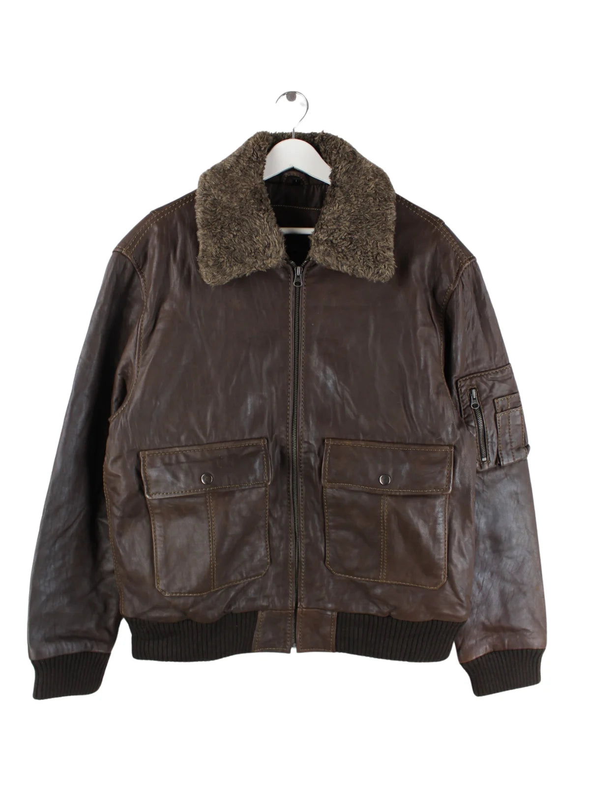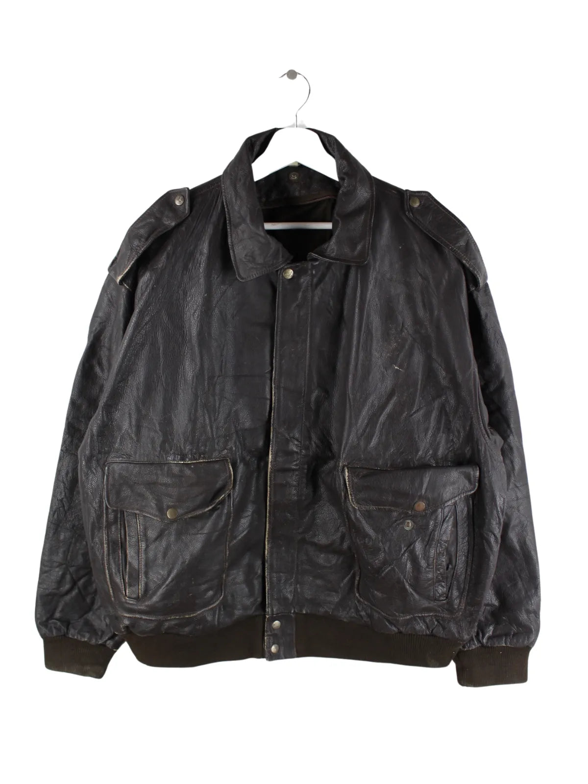 Vintage 90s Leder Bomber Piloten Jacke Braun L