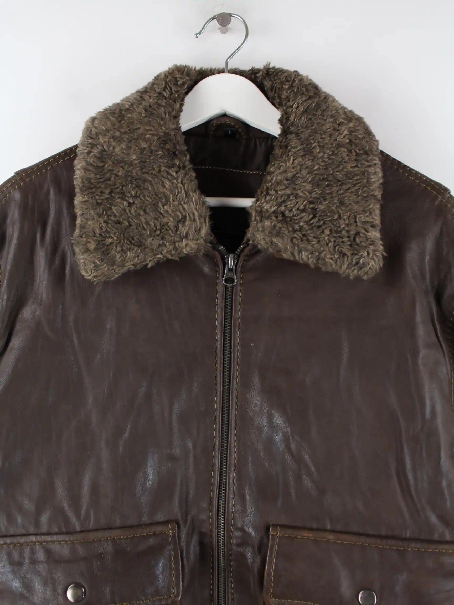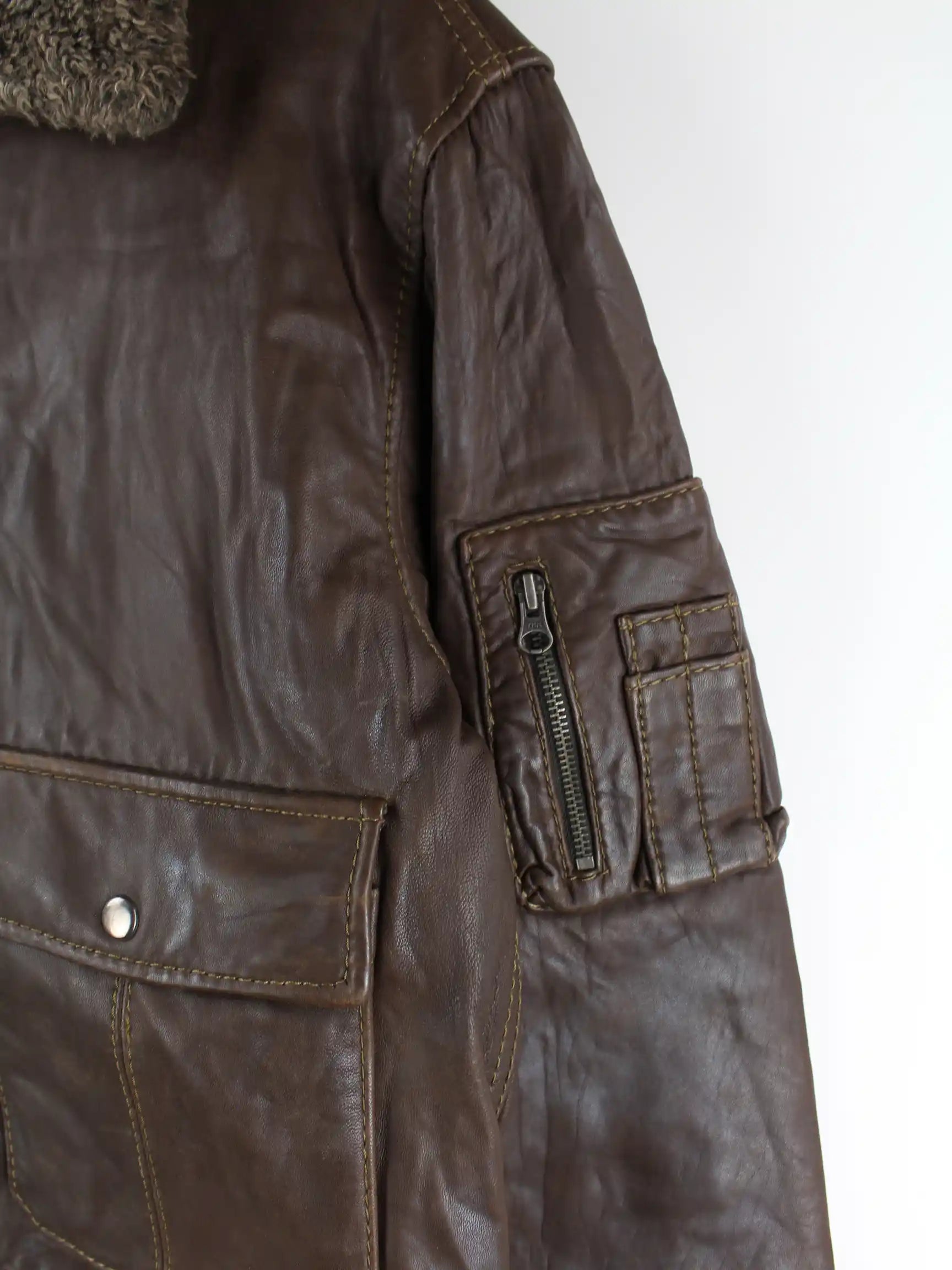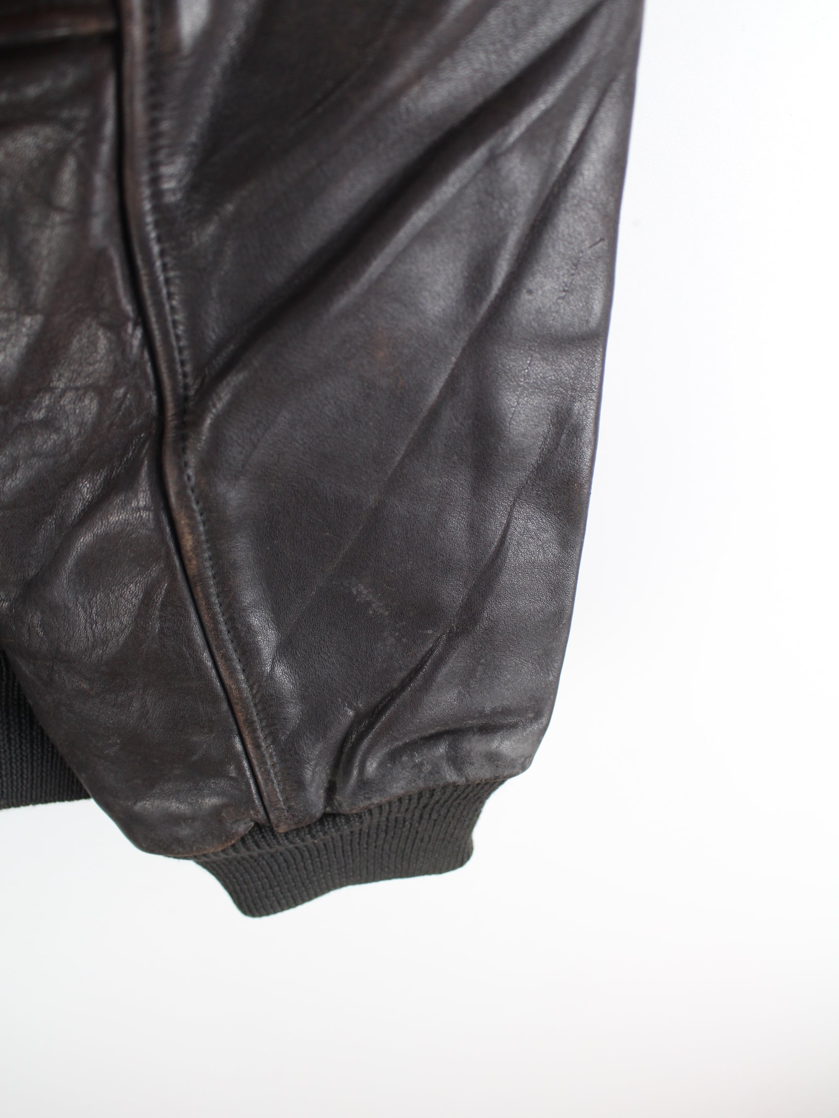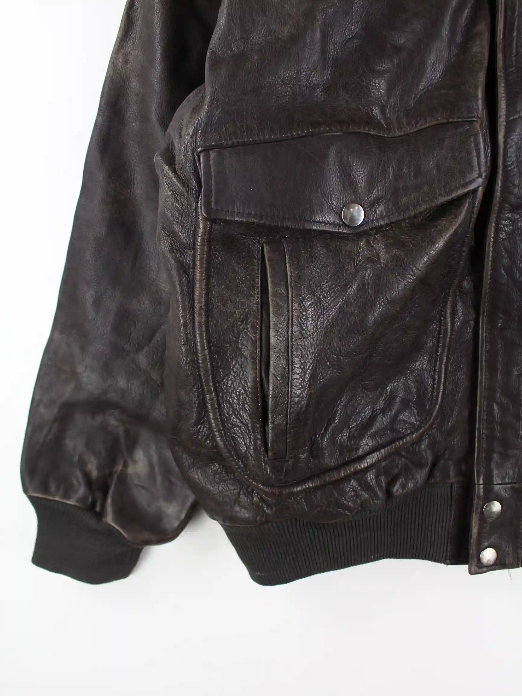 Vintage 90s Leder Bomber Piloten Jacke Braun L