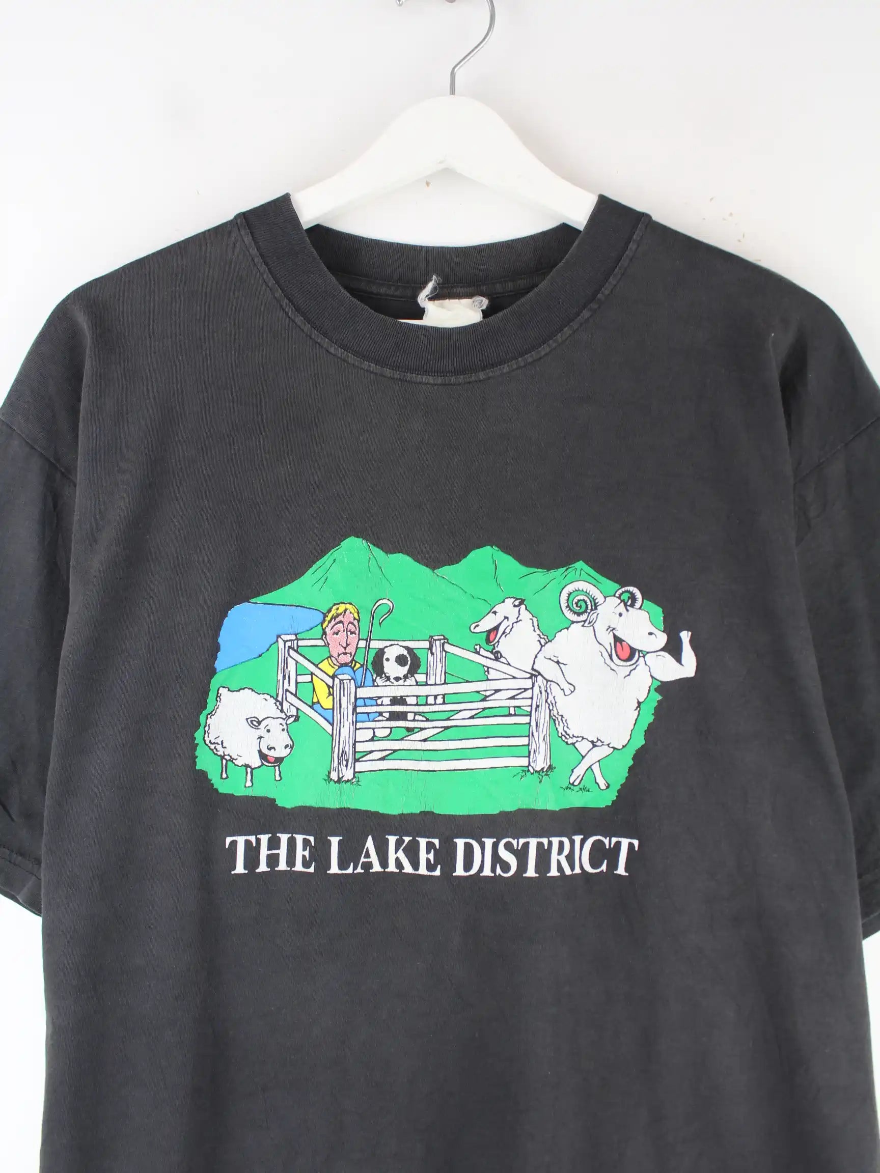 Vintage 90s Lake District Funny Print T-Shirt Grau XL