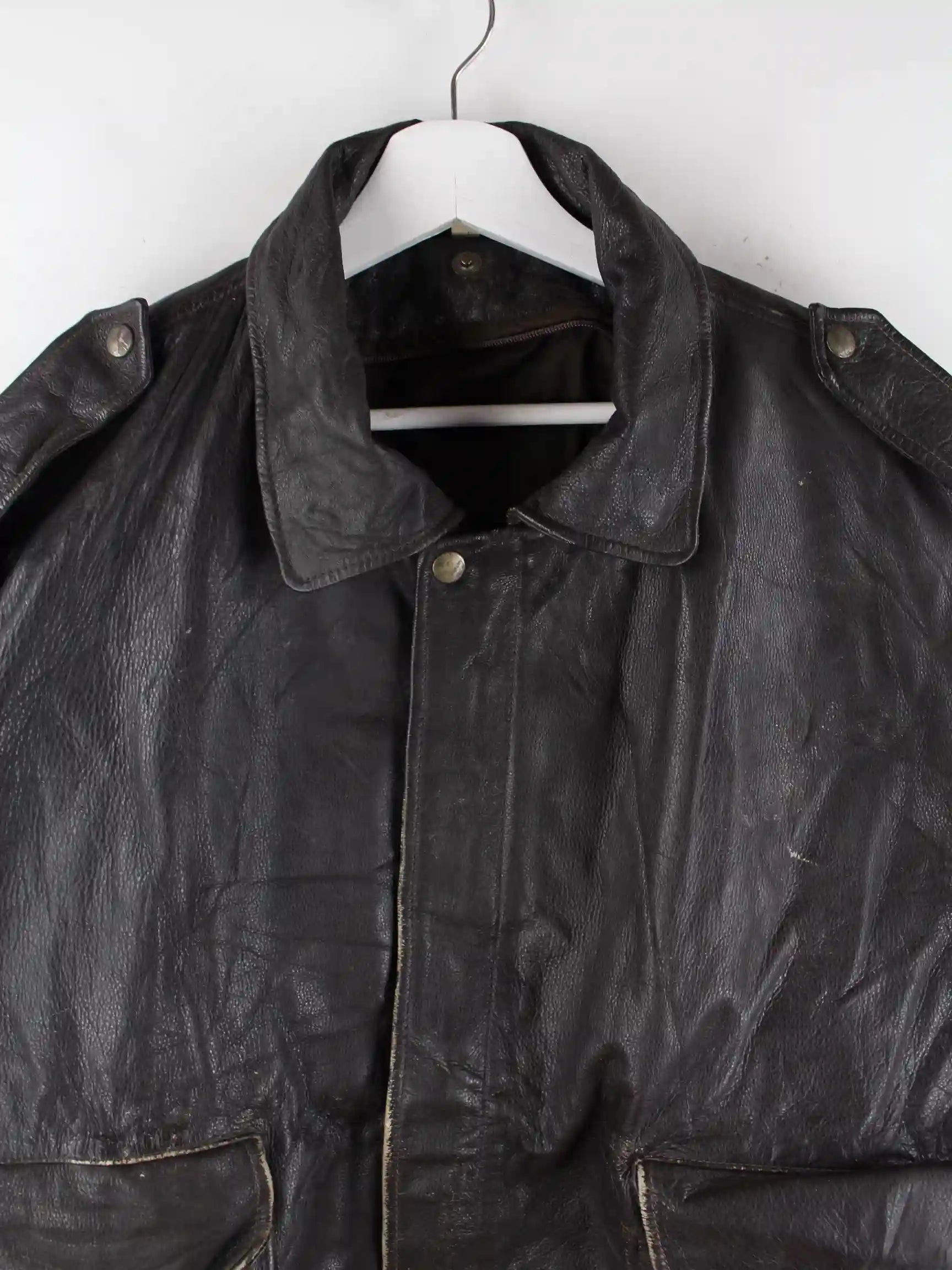 Vintage 90s Leder Bomber Jacke Schwarz XXL