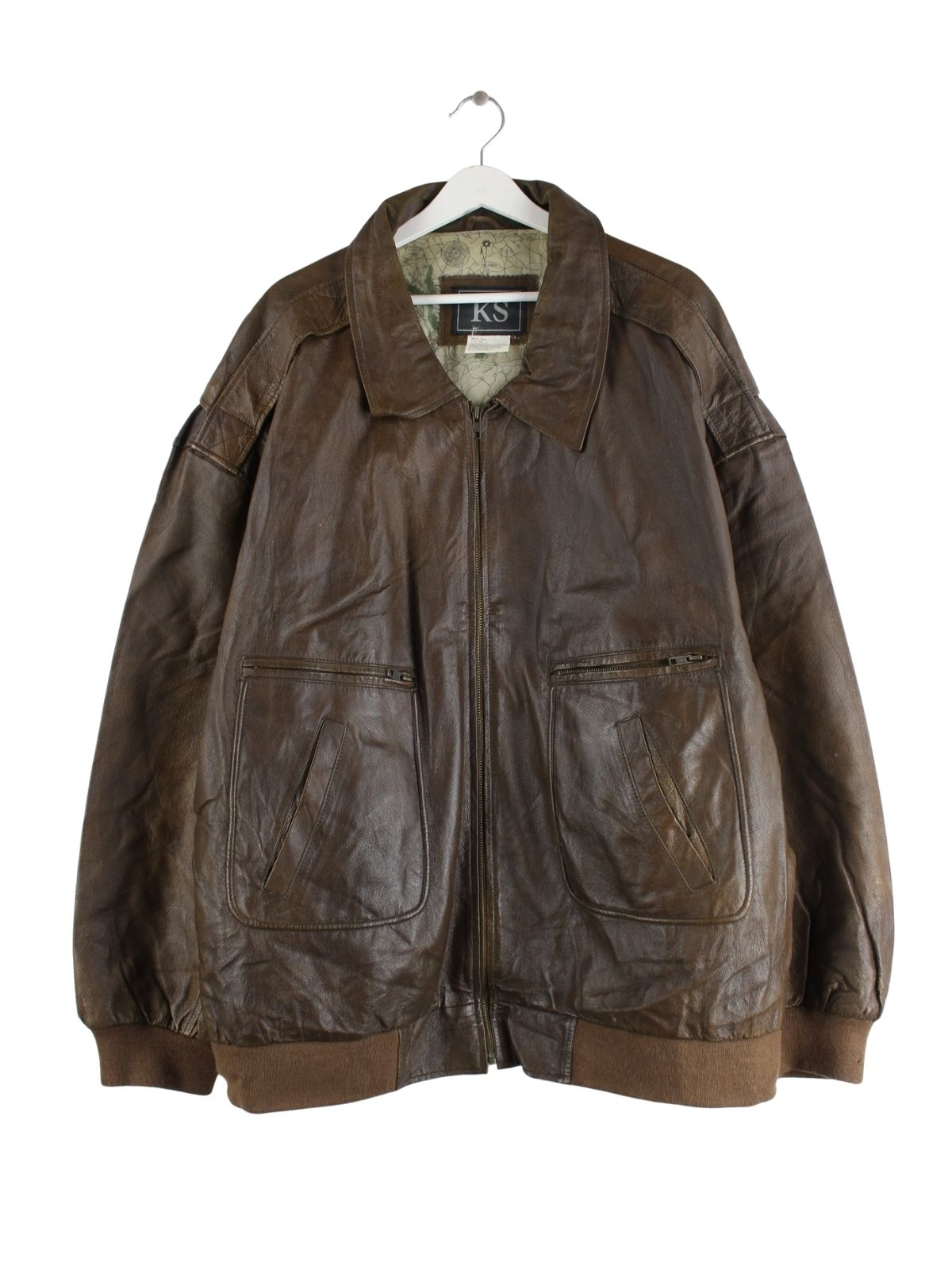 Vintage 90s Leder Suede Bomber Jacke Braun XL