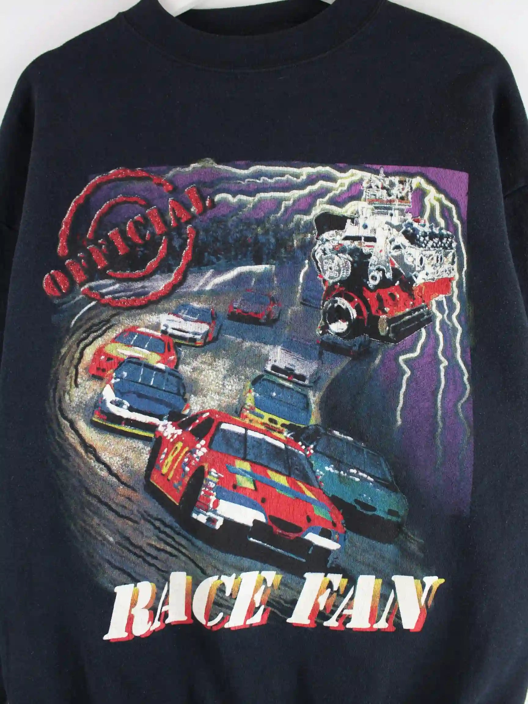 Vintage 90s Racing Embroidered Sweater Blau XXL