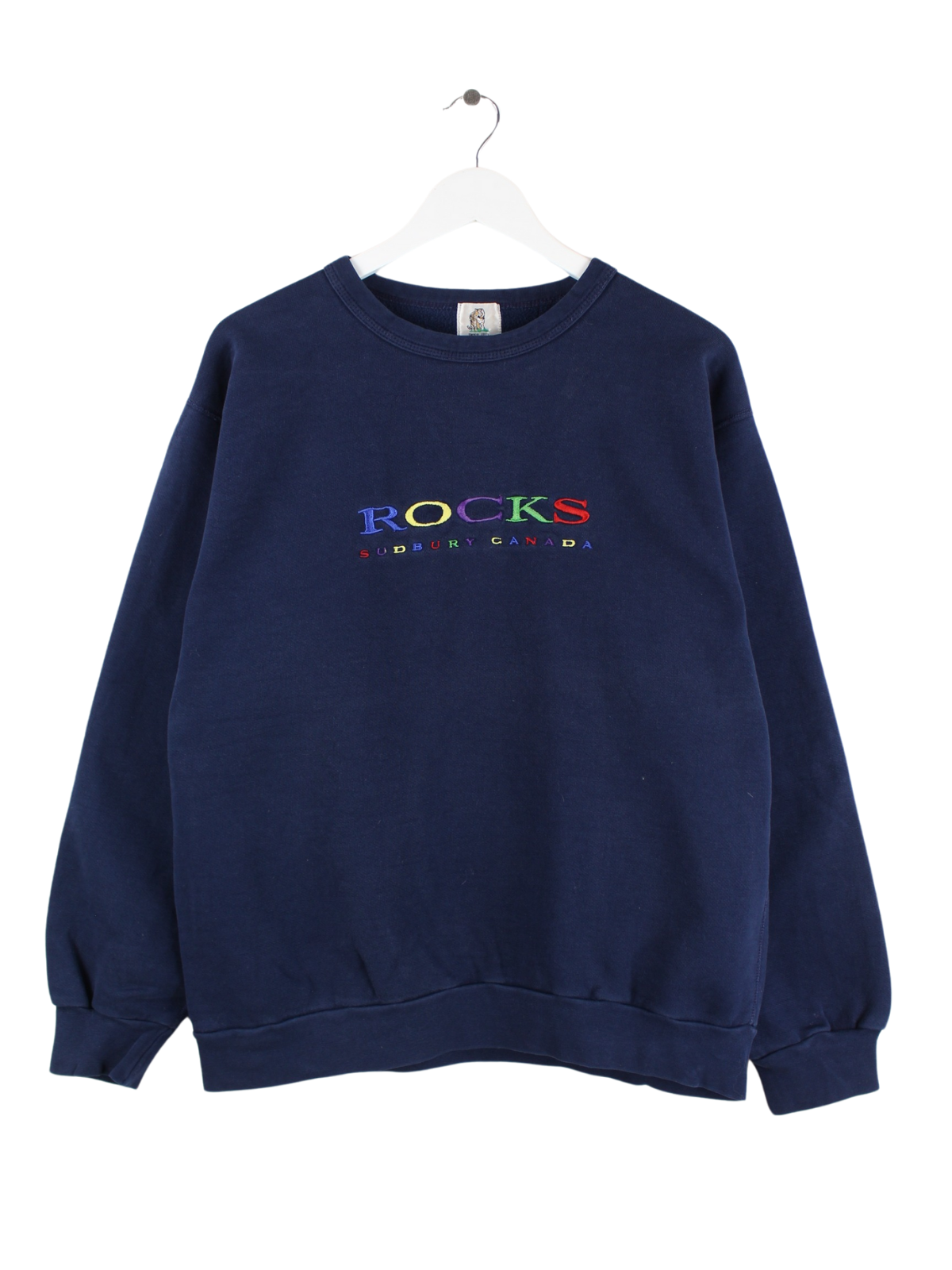 Vintage 90s Vintage Sudbury Rocks Embroidered Heavy Sweater Blau L