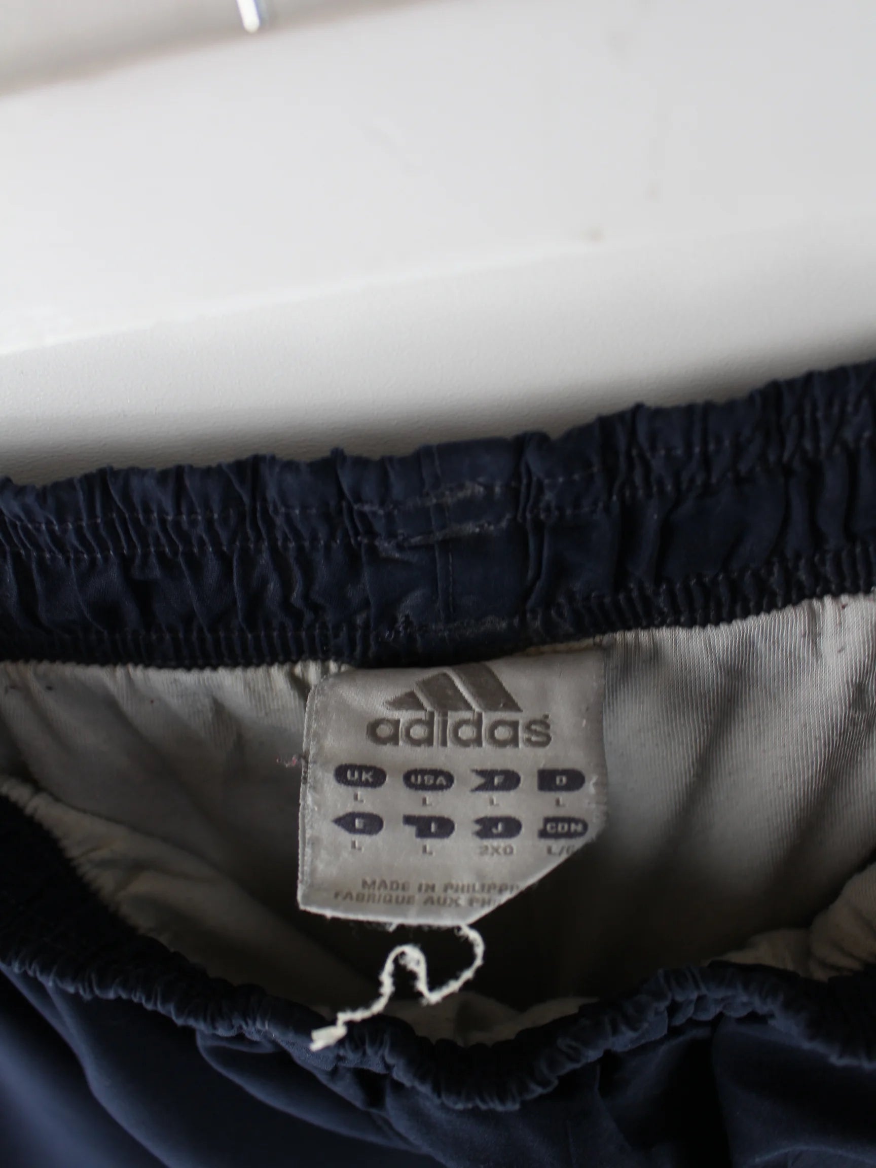 Track Pants des Labels Adidas in Größe L. Sie sind aus Synthetik produziert und in Blau im Bestand.