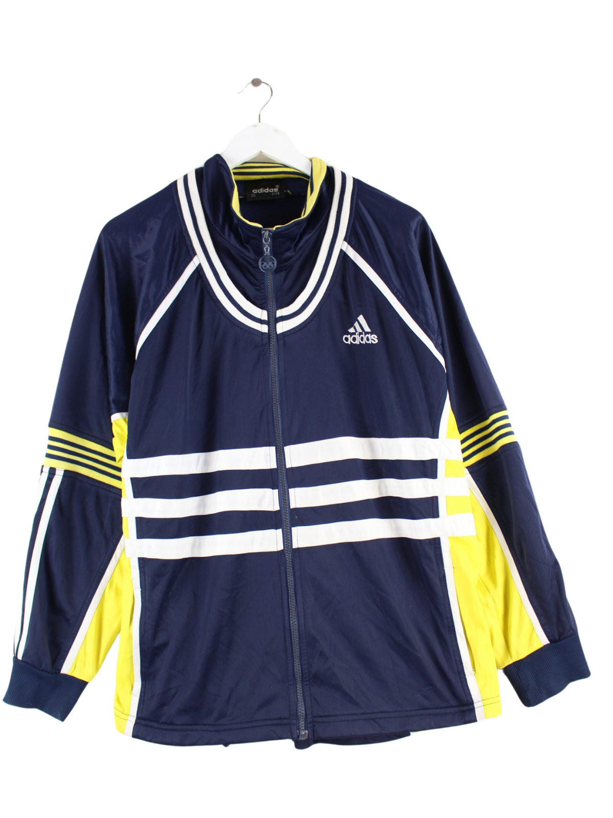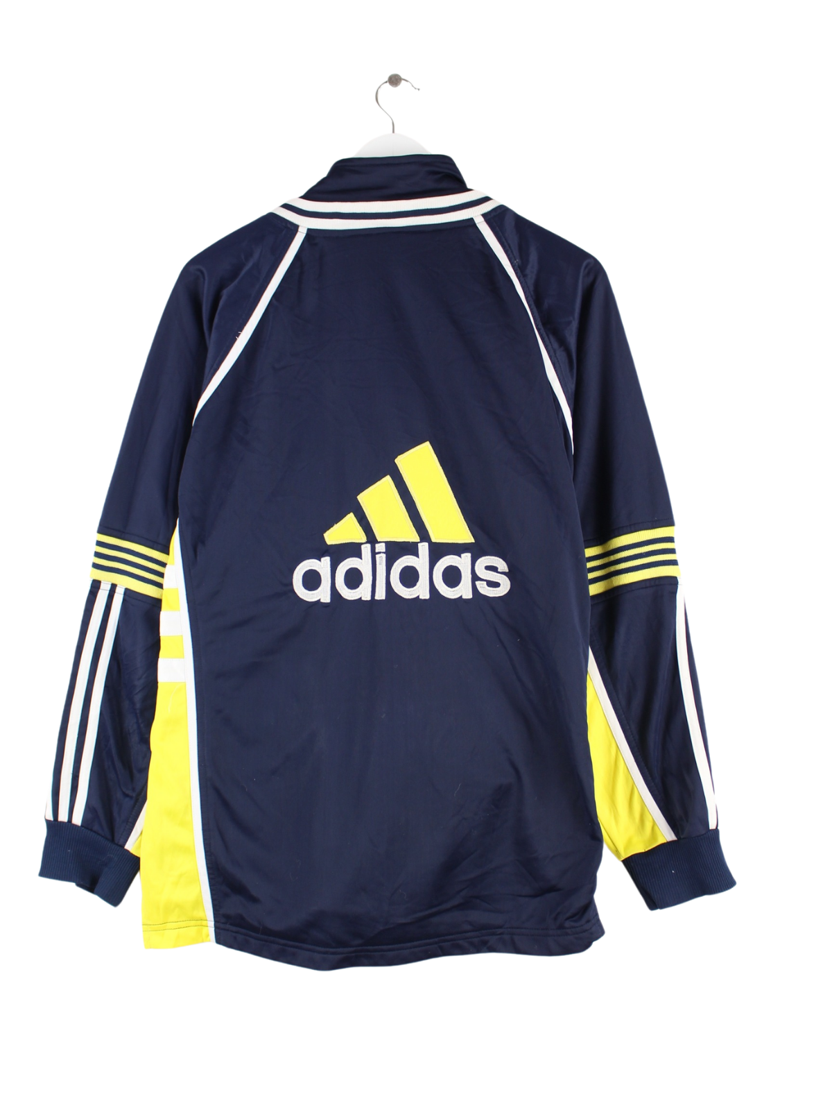 Trainingsjacke der Marke Adidas mit gesticktem Logo in Größe XL aus den 80'ern. Sie ist aus Synthetik gemacht und in Blau auf Lager.