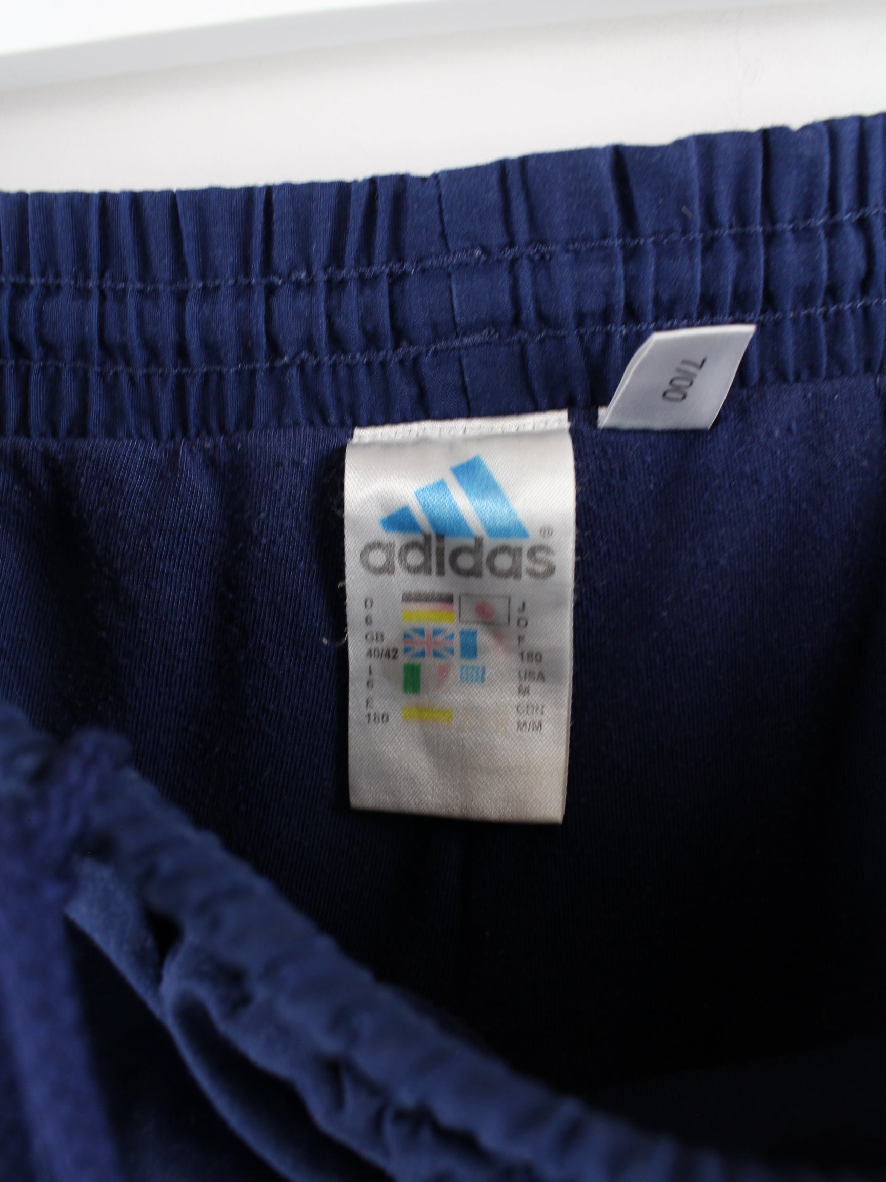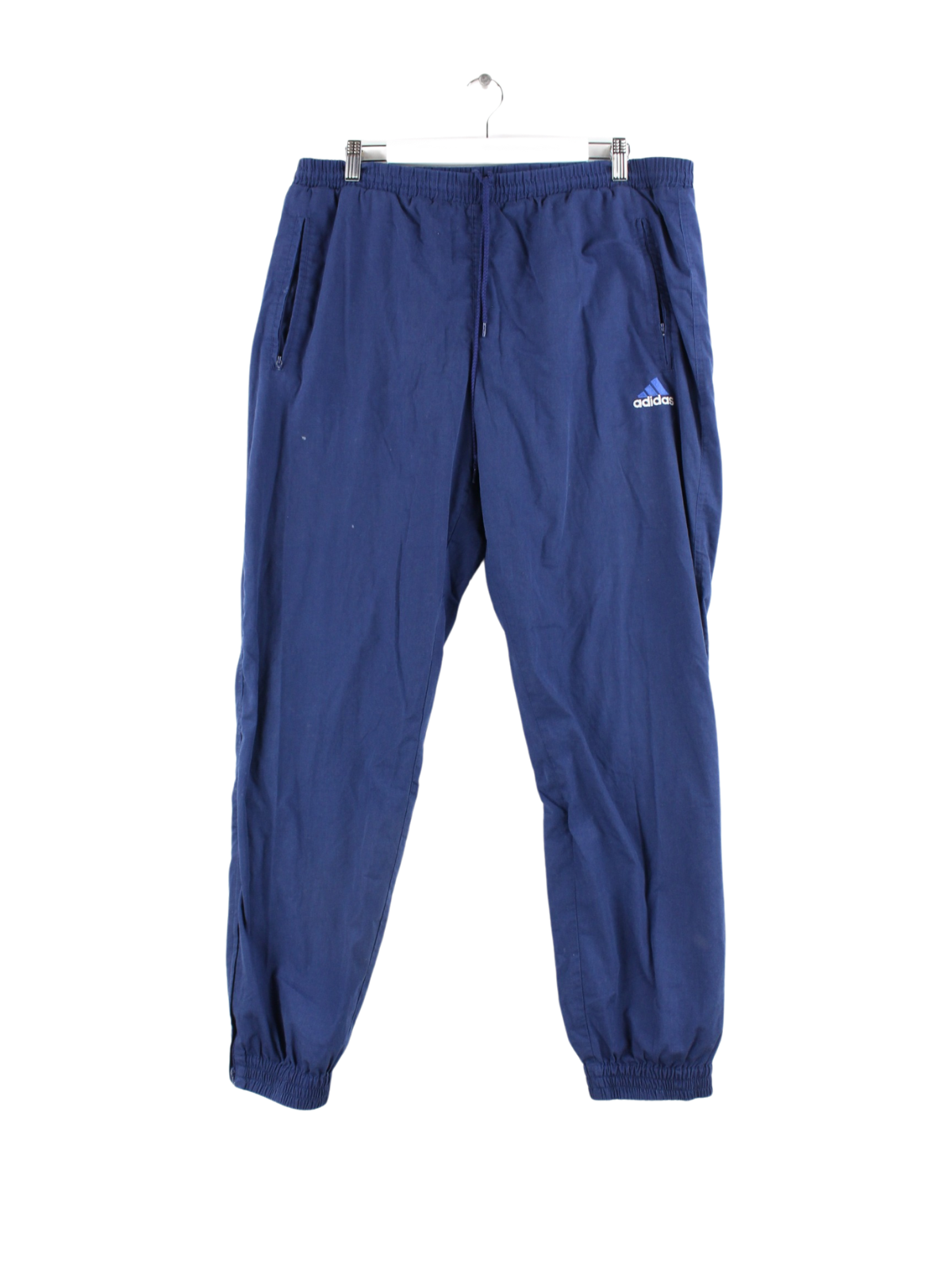 Track Pants aus dem Hause Adidas in Größe L aus den 80'ern. Sie sind aus Synthetik hergestellt und in Blau zu bekommen.