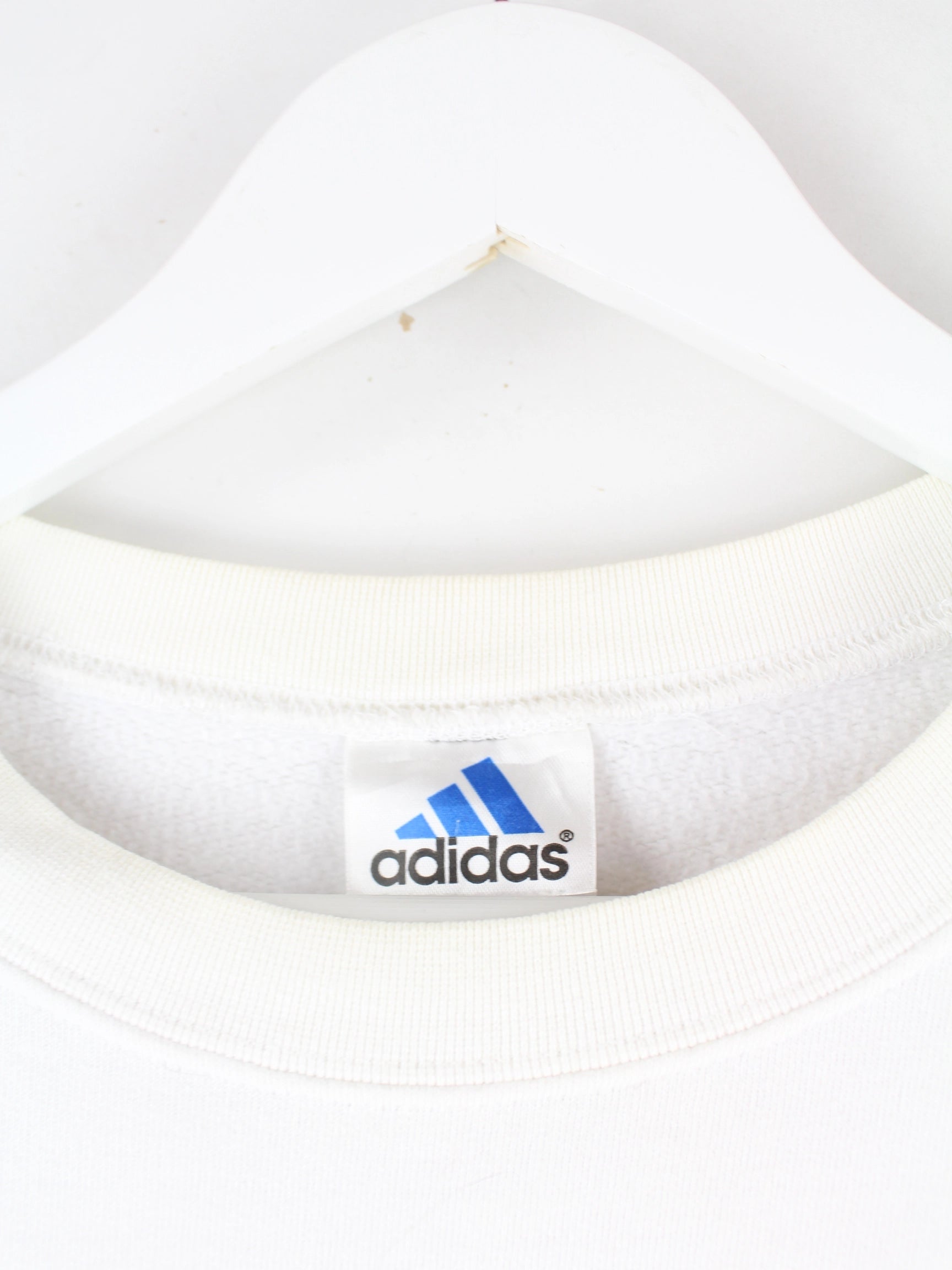 Sweater der Marke Adidas in Größe M aus den 90'ern. Er ist aus einer Baumwollmischung und in Weiß zu haben.